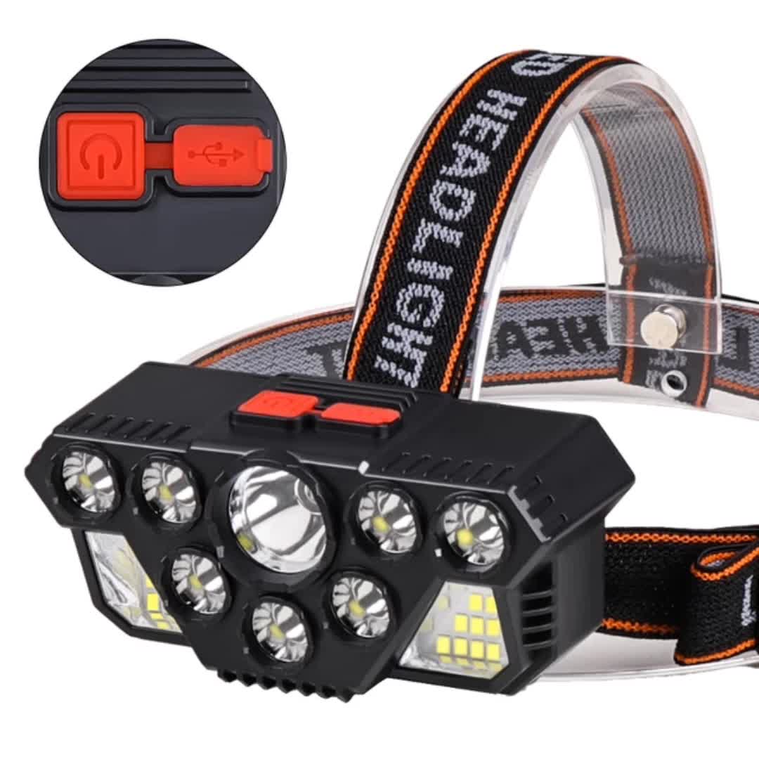 Cross-Border Bright Headlight USB Rechargeable Headlight Outdoor Fishing Headlight LED Work Light 10led Head-Mounted Miner's Lamp