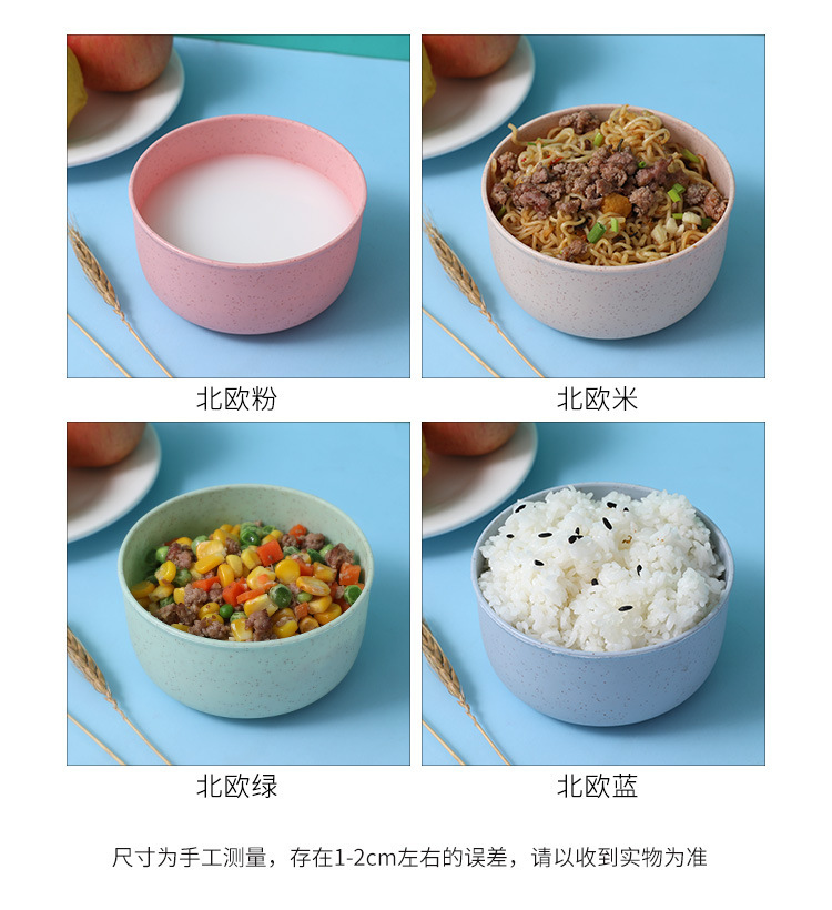Wheat Straw Bowl Plastic Household Soup Noodles Rice Soup Bowl Tableware Children's Bowl Tableware Daily round Plastic 中文版