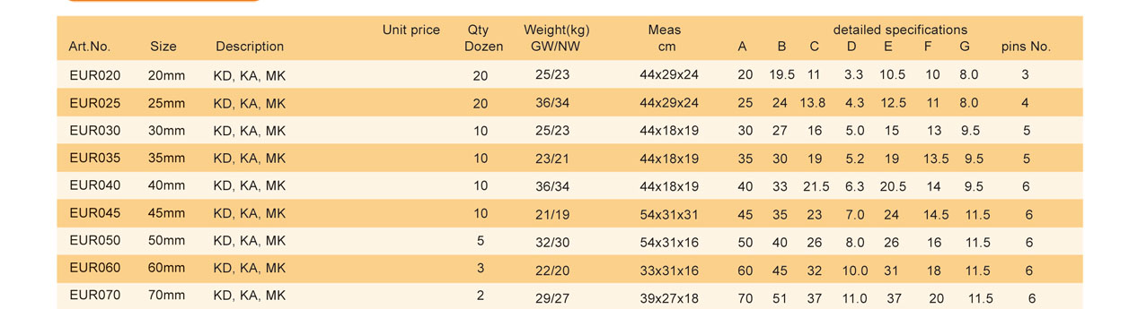 Locking : | Single locking size 20,25,32mm; Double locking sizes 38,50,63,75mm. |