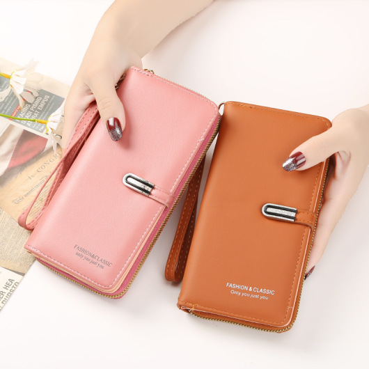 New Korean Fashion Trendy Long Two Fold Women's Wallet Ins Simple Multi-Card-Slot Zipper Student Pu Wallet
