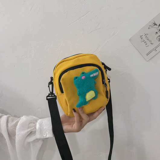 Korean Ins Vintage Style Girl Cute Cartoon Little Dinosaur Canvas Shoulder Bag Japanese Harajuku Students Crossbody Bag