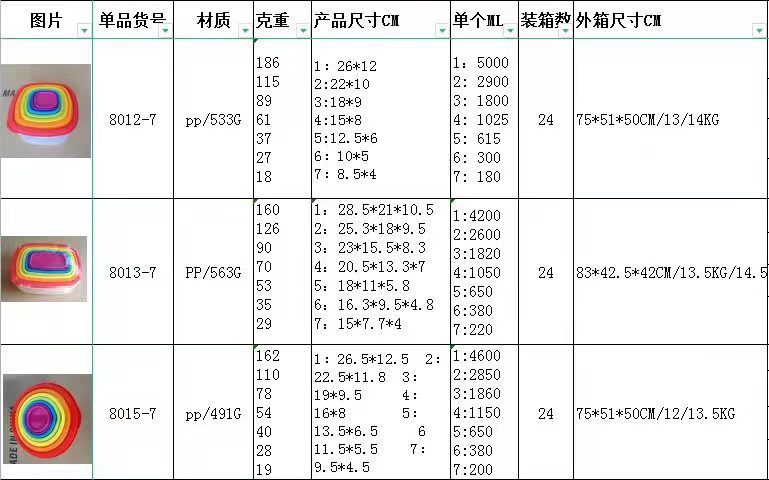 name: small rainbow 7-piece rectangular crisper-420g, 10KG/11KG