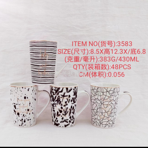 我公司生产的陶瓷茶杯,可用于办公室,家庭,工厂喝茶使用,也可以作为果汁,饮料等消费品的附属促销品赠送。陶瓷茶杯上还可以根据您的需要印制您需要的各种图片、添加公司LOGO图形和文字等,加工的礼品工艺陶瓷产品全部为高级工艺美术师精心设计,经过800度以上高温烧制而成的精美陶瓷艺术礼品,永不褪色变色。是温馨相送、友谊联络、喜庆贺礼、工商馈赠、师生情谊、敬意表达、励志名言及节日纪念等传达非凡感受的礼物,欢迎各界有识之士光临我公司参观指导。