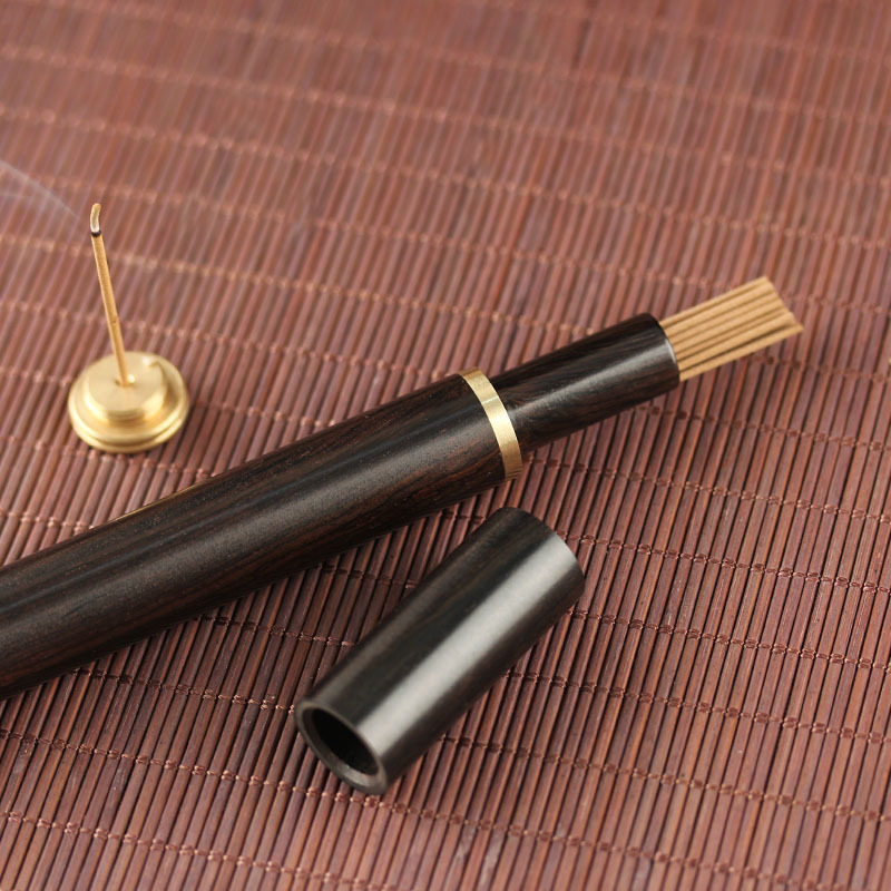 wholesale sandalwood joss-stick joss stick barrel blackwood inlaid copper incense tube with incense holder household incense tube incense 8g pack