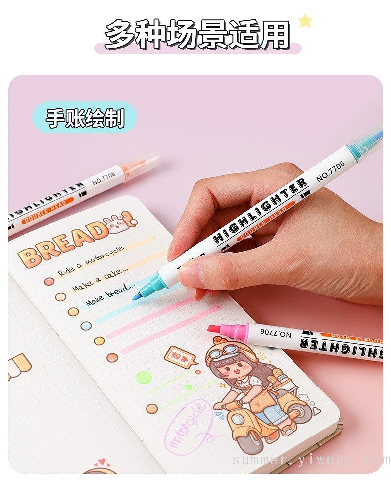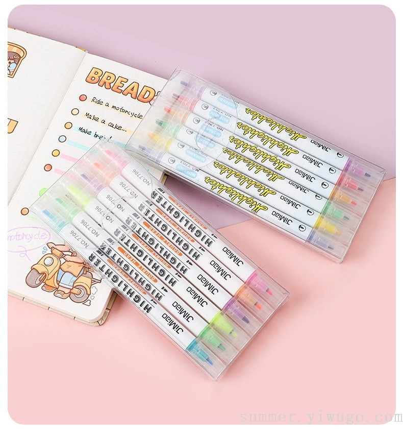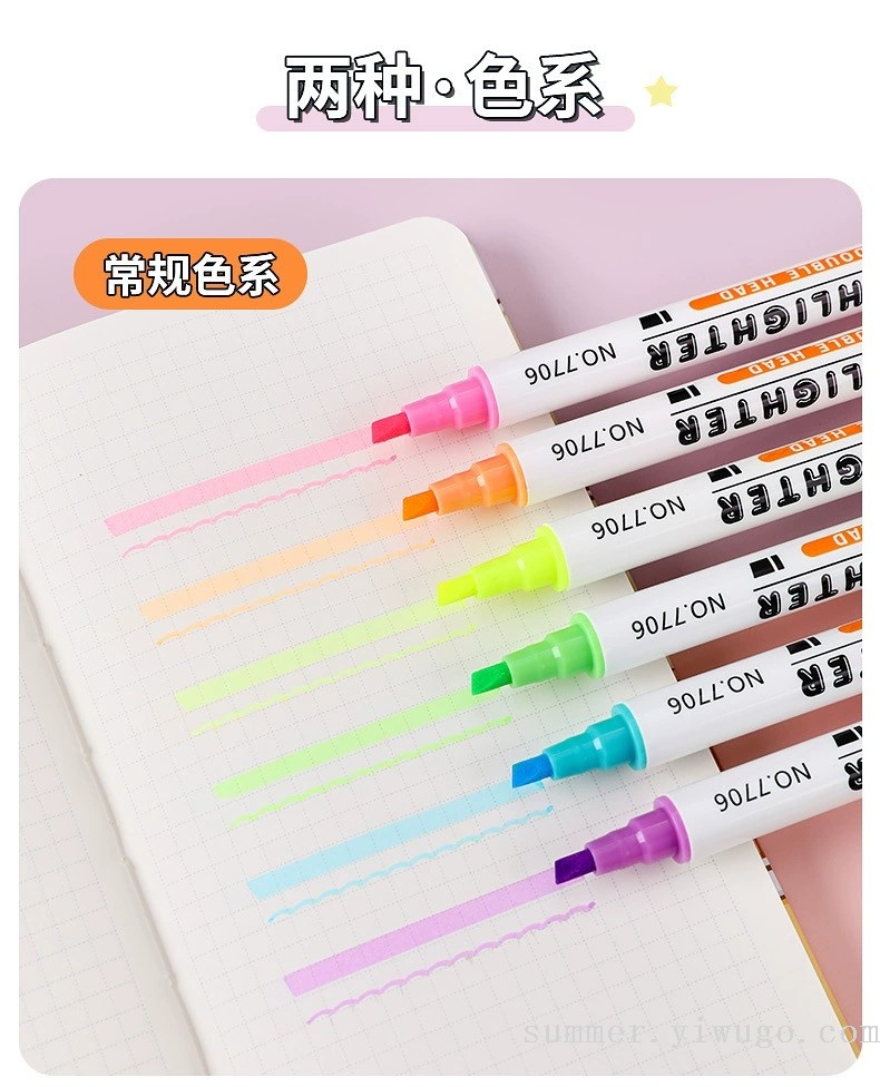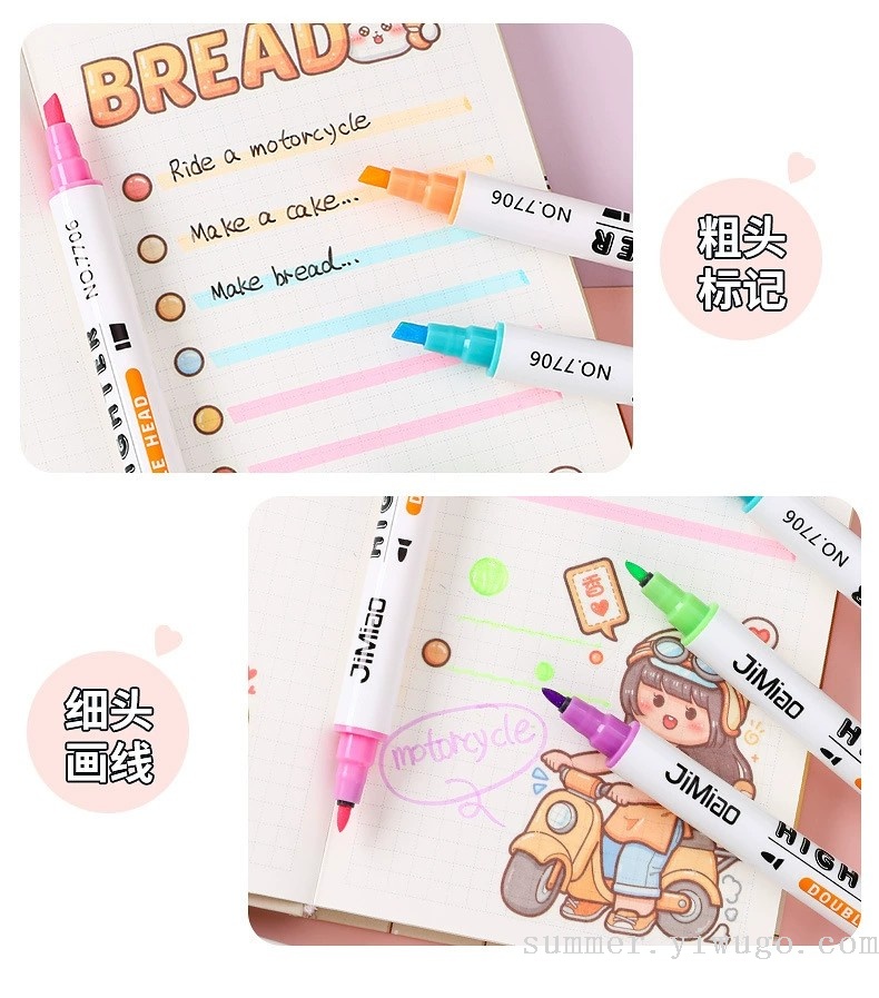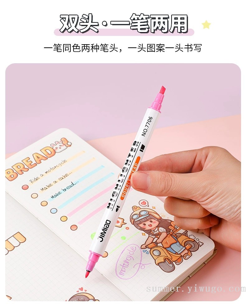 polar drawing color fluorescent pen double-headed marker students take notes with key reading marking pen 中文版