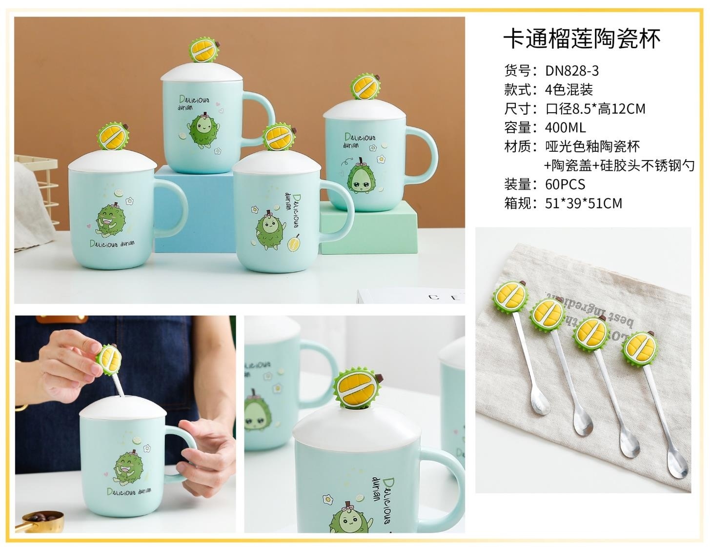 cute ins cartoon durian ceramic cup office water glass coffee cup household mug gift cup 中文版