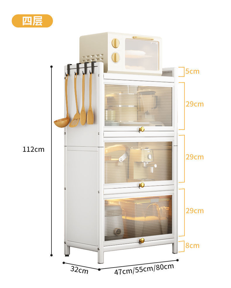 Kitchen Shelf Floor Multi-Layer Locker Multi-Functional Microwave Pot Oven Cabinet Storage Shelf with Cabinet Door 中文版