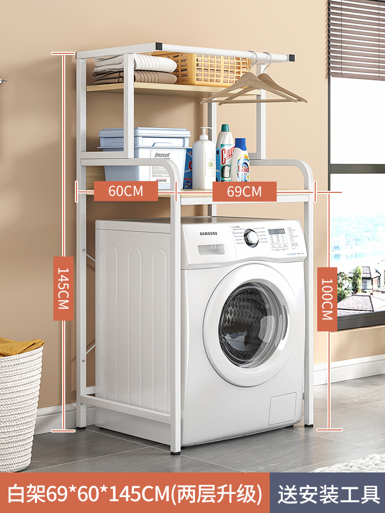 2 layers (with railing) light walnut color + white rack 69 x60x145cm: smart storage stable load bearing
