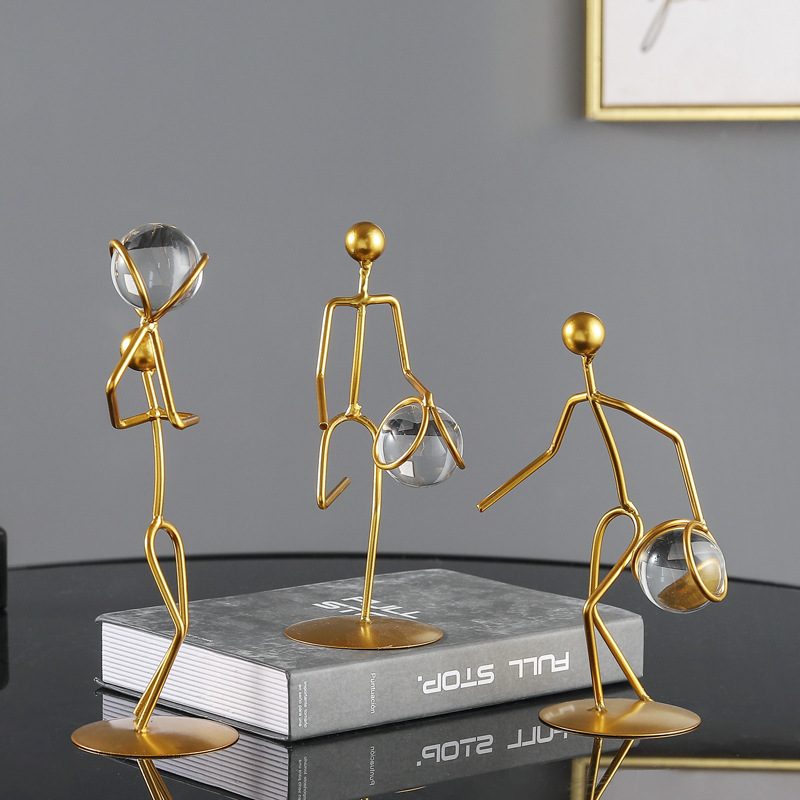 simple golden geometric iron athletes crystal ball decoration creative shooting props table decoration furnishings