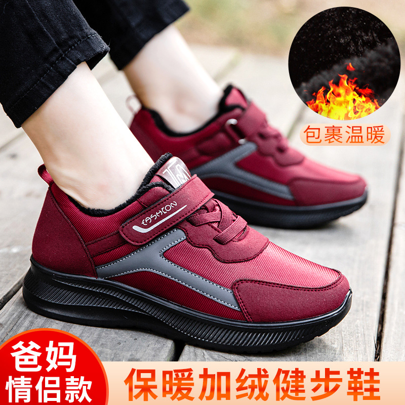 Women's Cotton-Padded Shoes Winter New Shoes for the Old Fleece-Lined Thermal Mom Shoes Lightweight Soft Sole Middle-Aged and Elderly Casual Walking Shoes