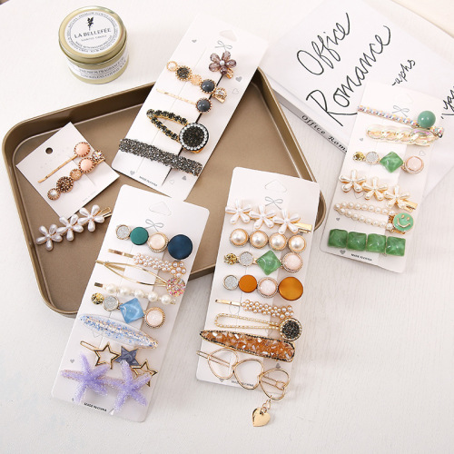 light luxury rhinestone side clip suit bear love pearl duckbill barrettes hair accessories high-end heavy industry bar hairclip 中文版