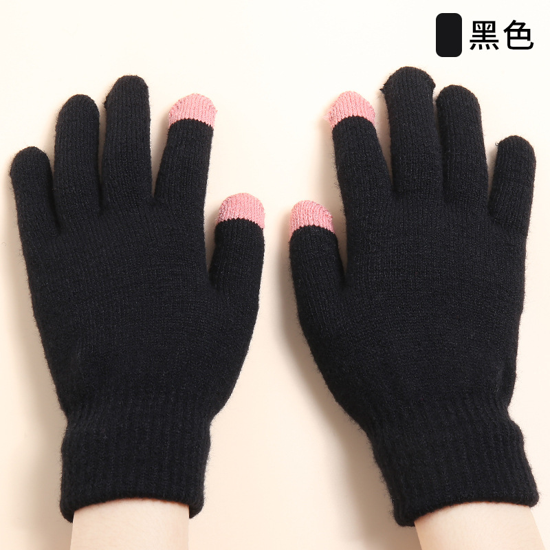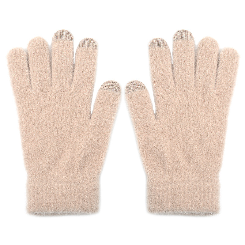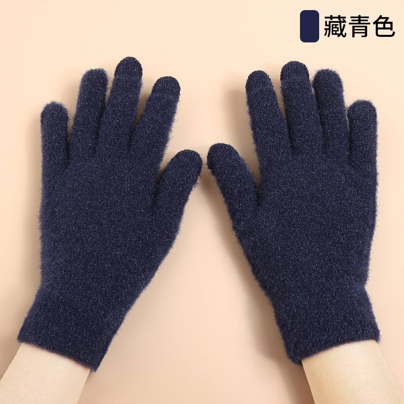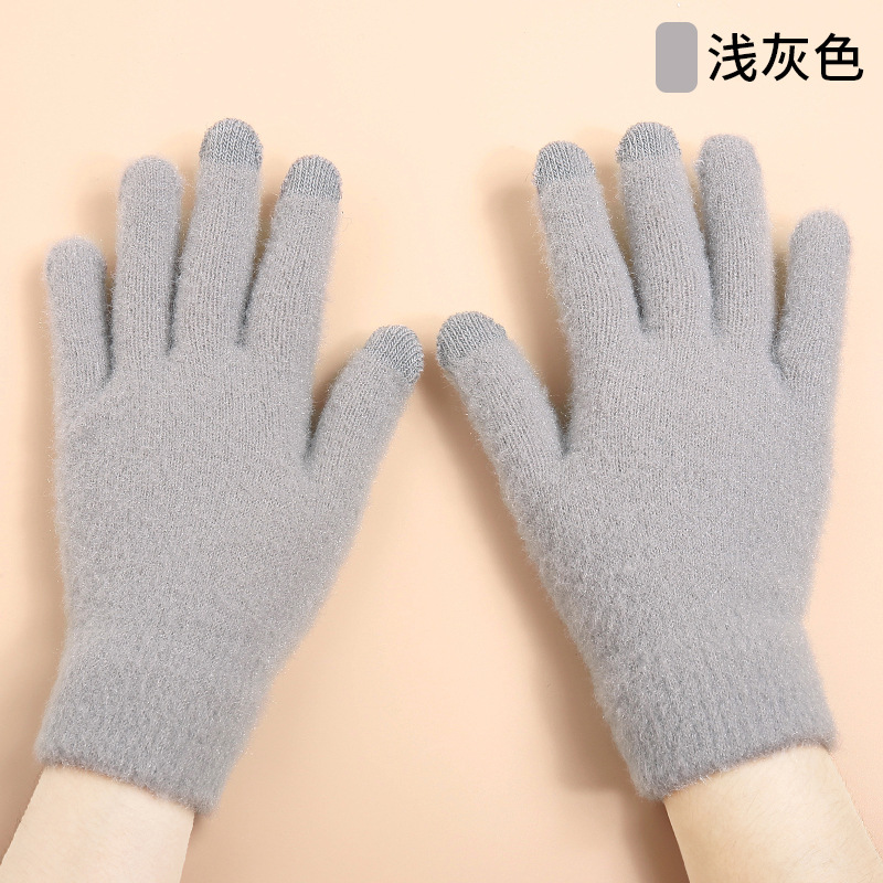 Winter New Knitted Plush Gloves Girls Autumn and Winter Cycling Cold Protection Warm Velvet Padded Thickened Touch Screen Gloves Wholesale 中文版