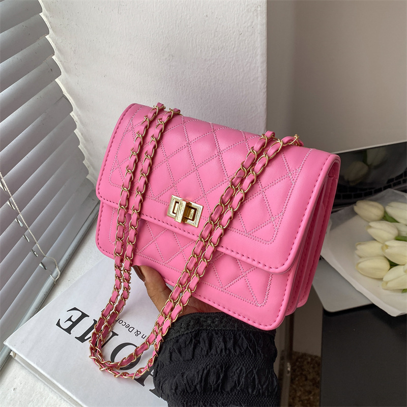 Simple Small Bag 2022 New Trendy Spring Fashion Chain Women's Shoulder Bag Rhombic Embroidery Thread Crossbody All-Matching Square Bag