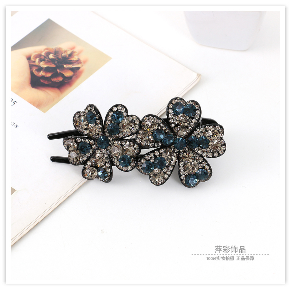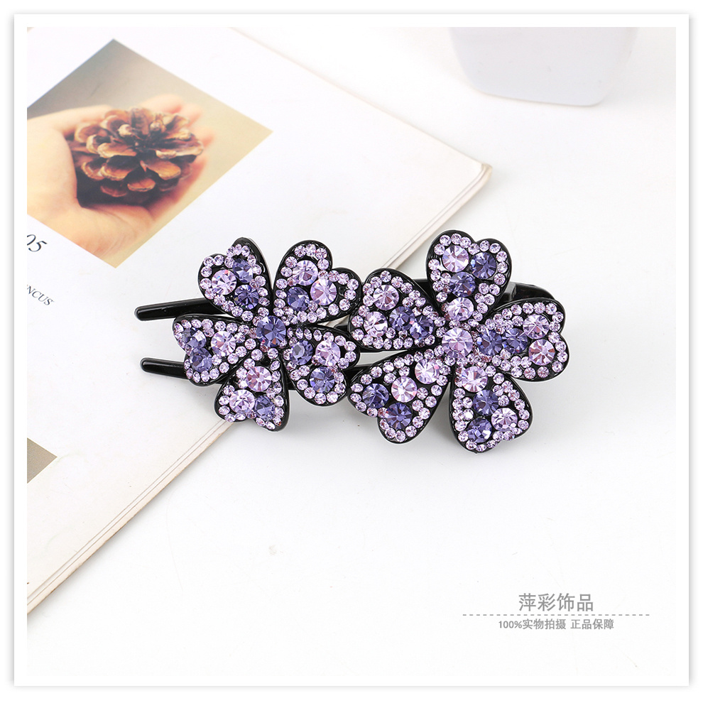 korean elegant amethyst large grip women's updo duckbill barrettes headwear floral rhinestone three teeth grip 中文版