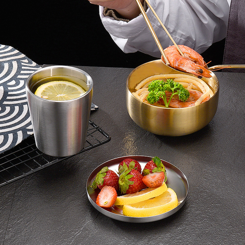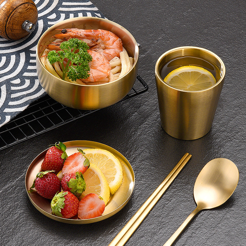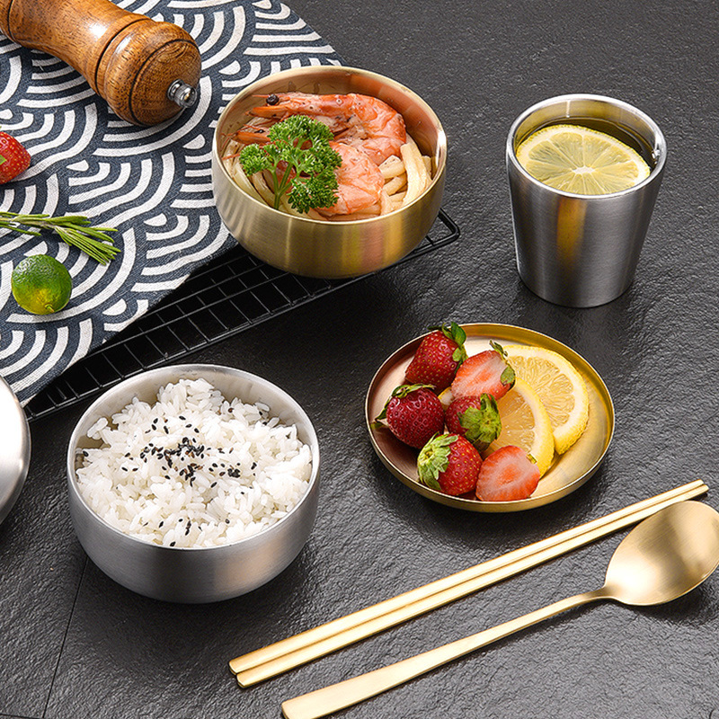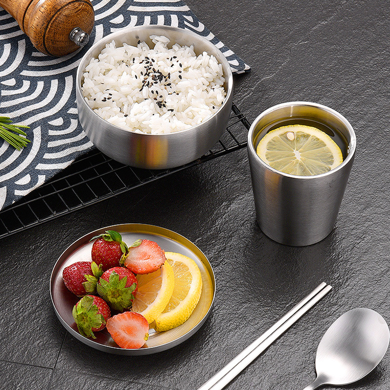 hz473 korean style stainless steel solid chopsticks spoon non-slip korean style dishes restaurant food grade cup commercial tableware