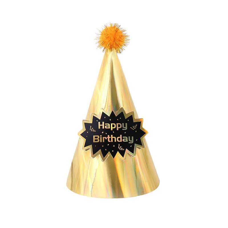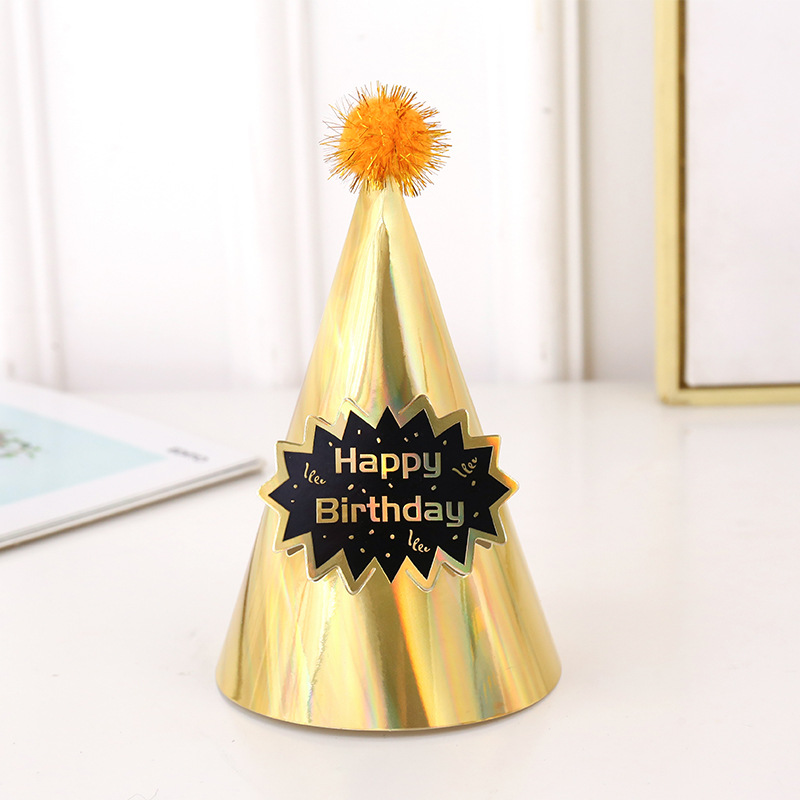 wholesale birthday hat gold cardboard birthday hat pcs party decoration supplies gold silk party plush ball cap 18cm 中文版