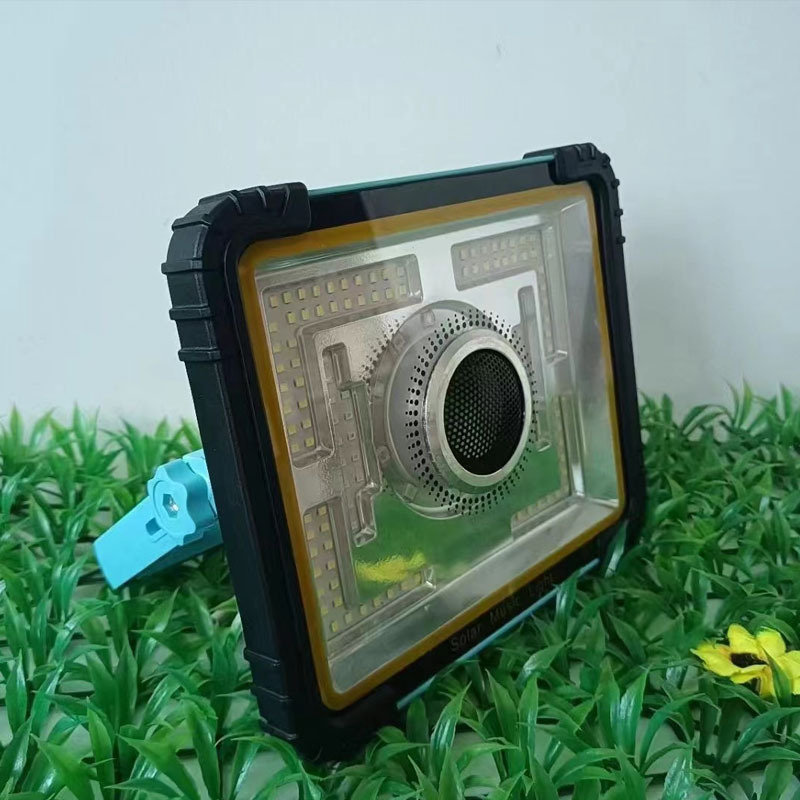 Product features: photocontrol + time control + strobe + color changing + Bluetooth speaker Solar panel: 5V/3W polycrystalline cell Battery: 2 pieces of 18650, capacity of 4800mAh, saturation of 100% Brightness: full brightness / half brightness / dim / red and blue strobe / dual color Lighting time: 4 hours, 6 hours, 10 hours