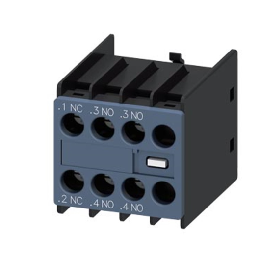 Auxiliary switch + front, 3 + NO + current path +1 + NO,1 + NO,1 + NO + for +3RH2 + and +3RT2 + Bolt terminal connection +.3/.4,.3/.4,.3/.4