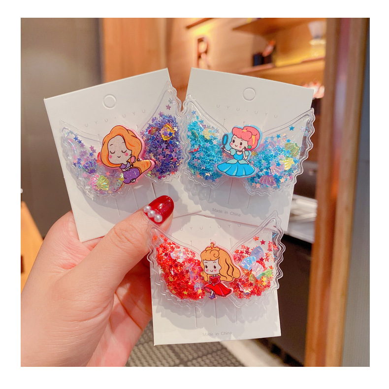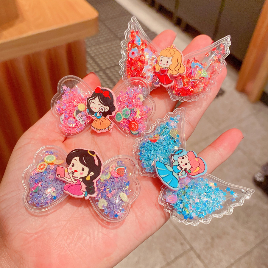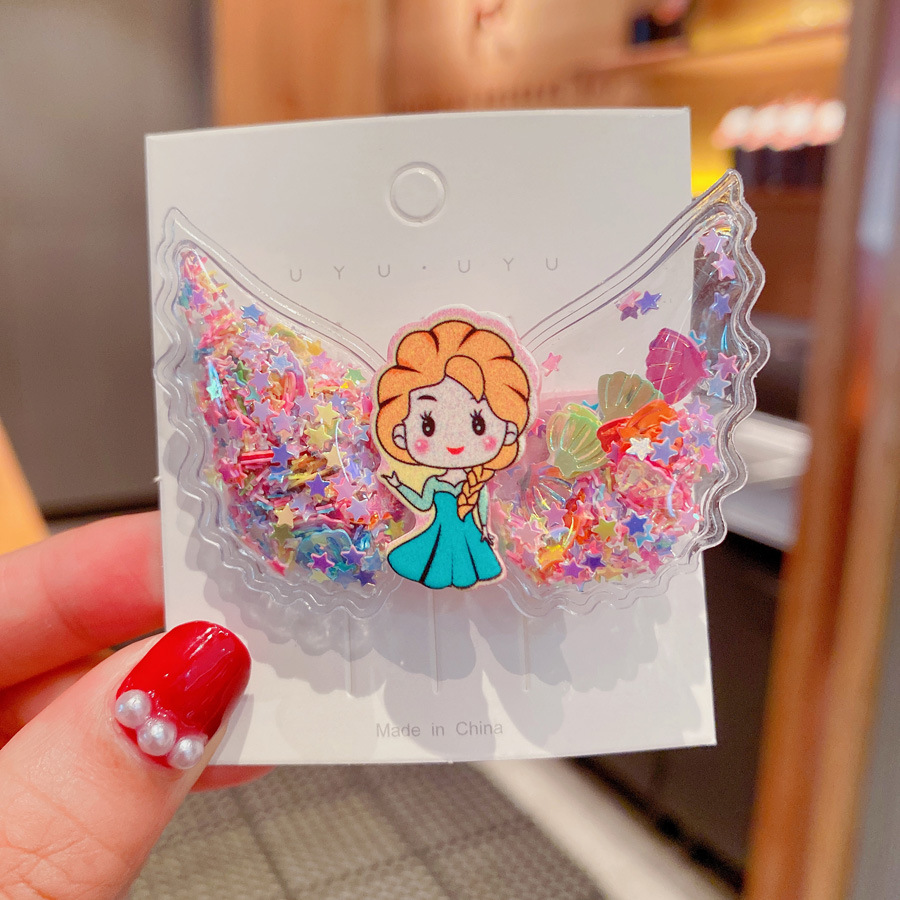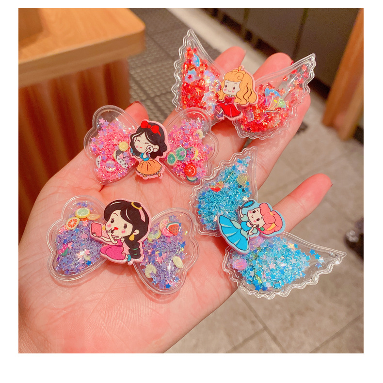 korean cartoon children quicksand barrettes cute girl princess wings hairpin acrylic side clip baby hair accessories 中文版