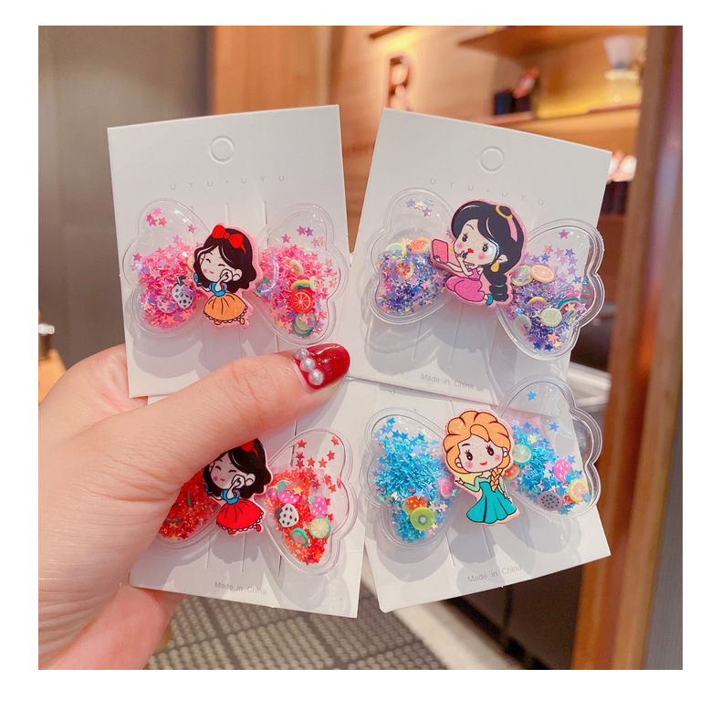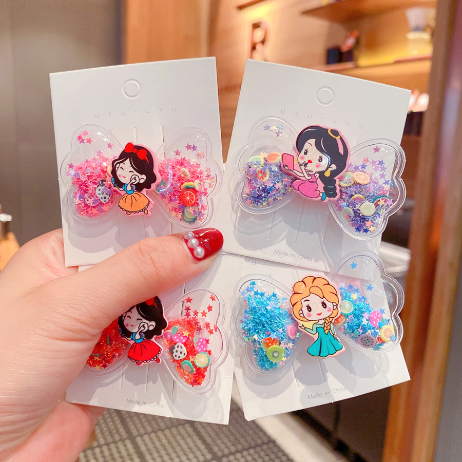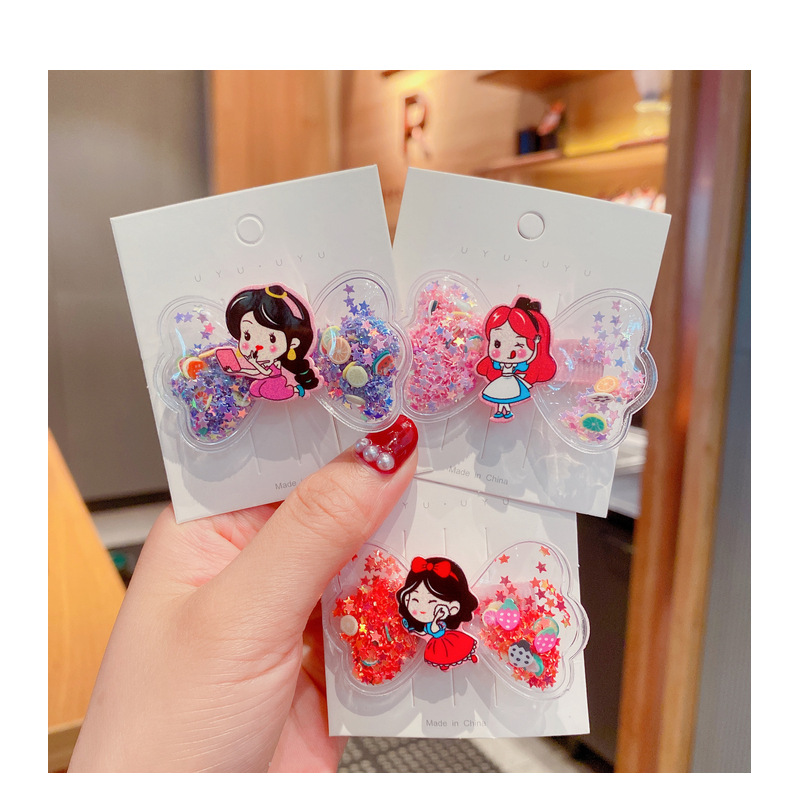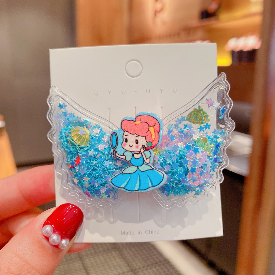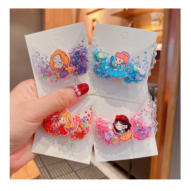 korean cartoon children quicksand barrettes cute girl princess wings hairpin acrylic side clip baby hair accessories 中文版