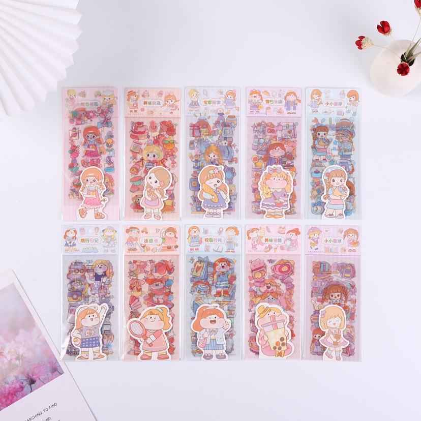 spot wholesale journal transparent pet stickers 3 pieces 40 into the box creative material gu dish fat house cute small flower stickers 中文版