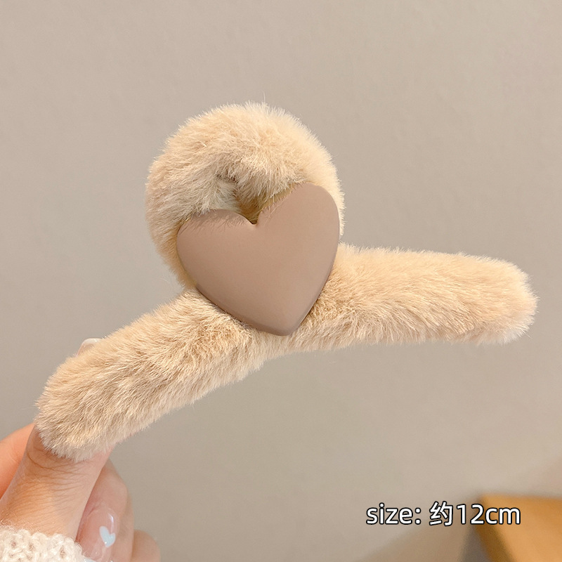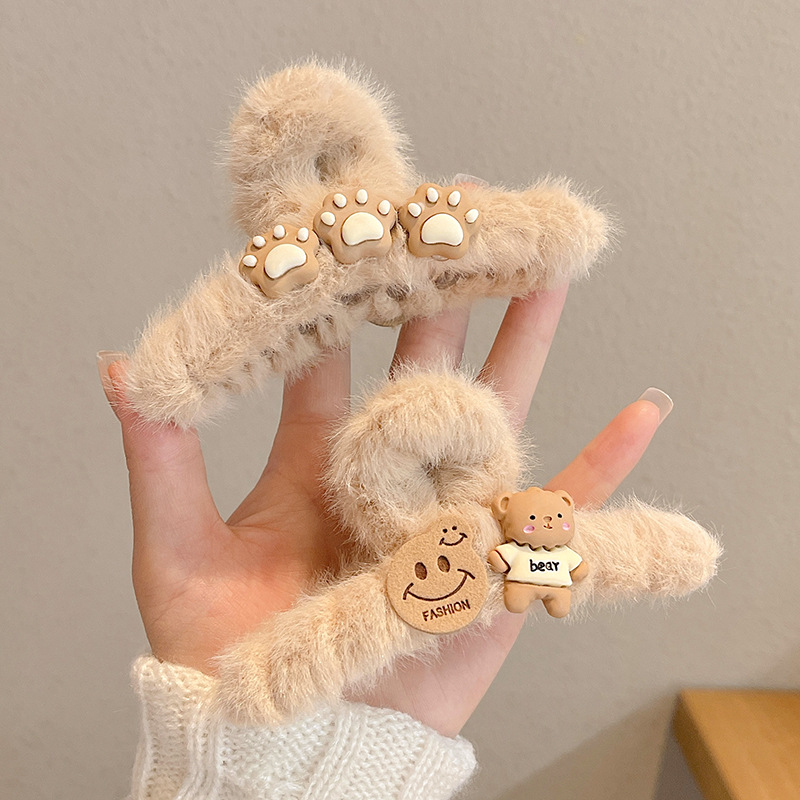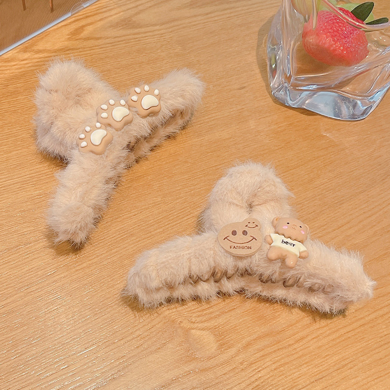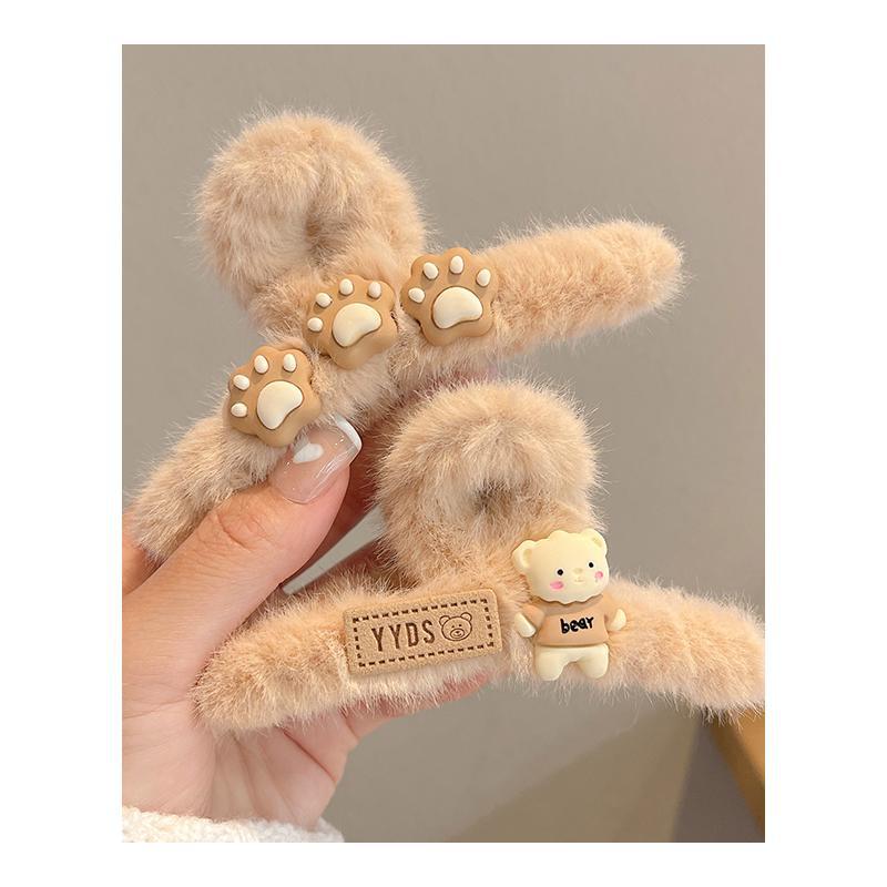Autumn and Winter Bear Plush Grip Shark Clip Coffee Color Back Head Hair Claw Hairpin Clip Female Headdress Hairy Hair Clips