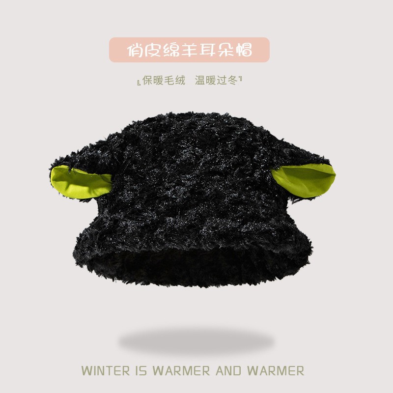 Little Lamb Hat Cute Sweet Bucket Hat Female Korean Style Face-Looking Little Lamb Fleece Bucket Hat Ears Plush