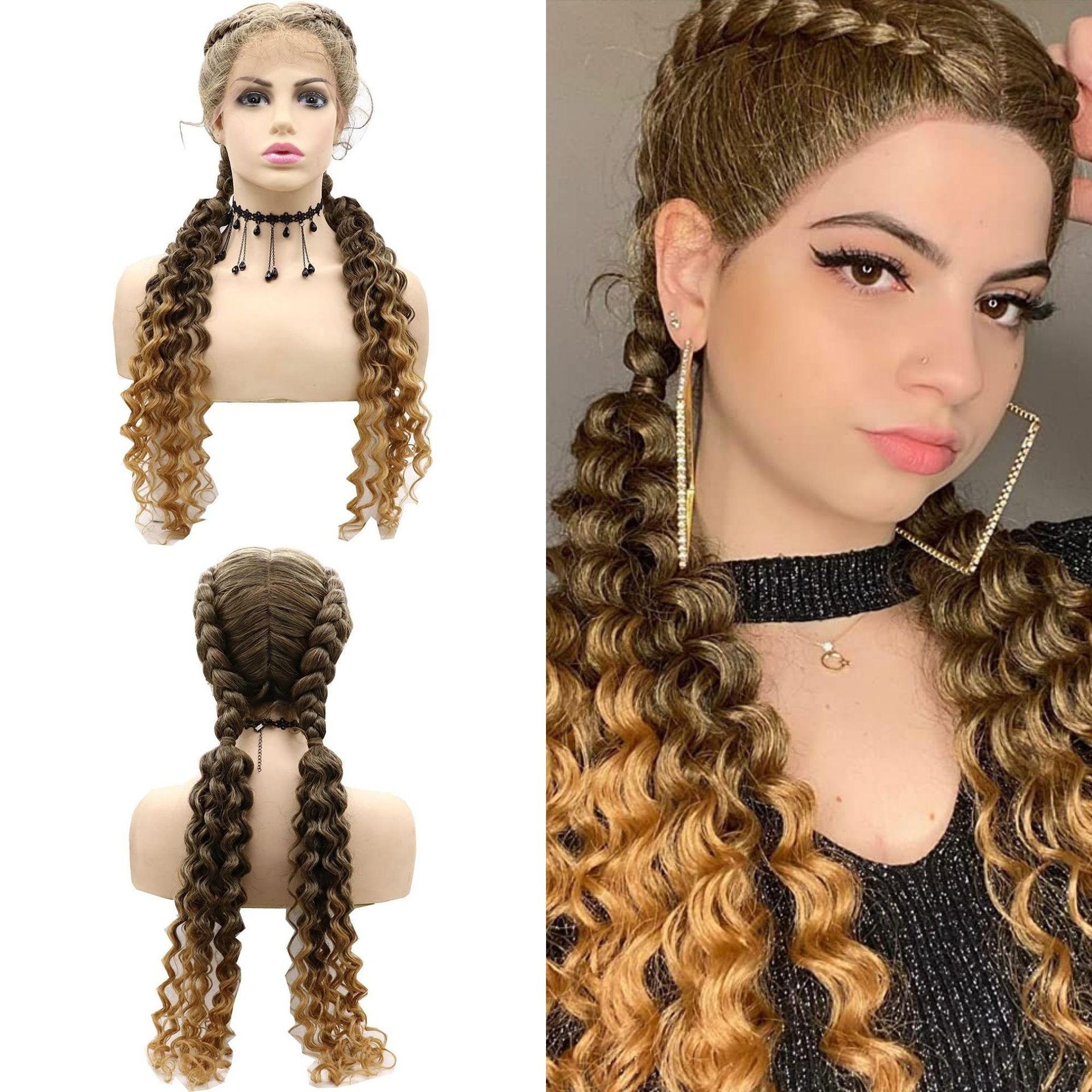 假发类型:瑞士蕾丝前荷兰双胞胎编织假发