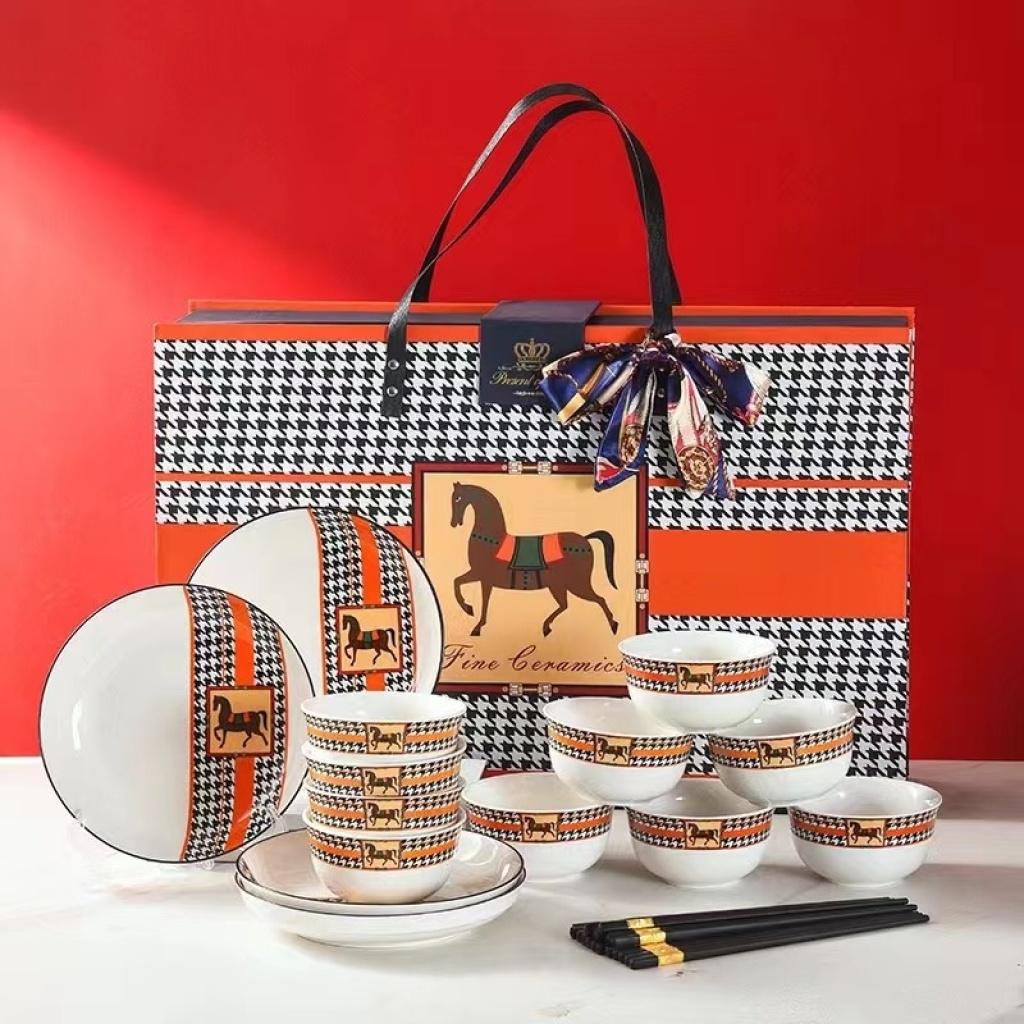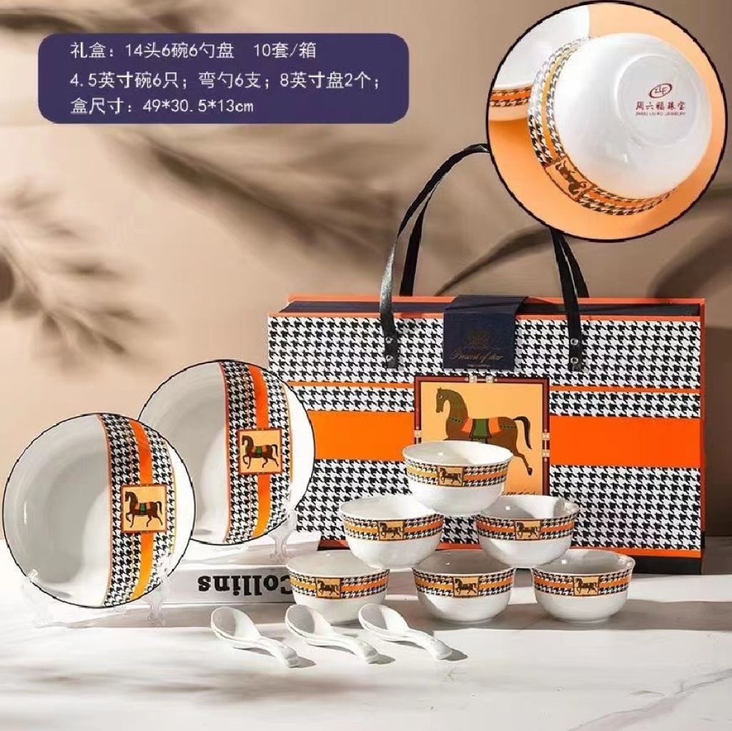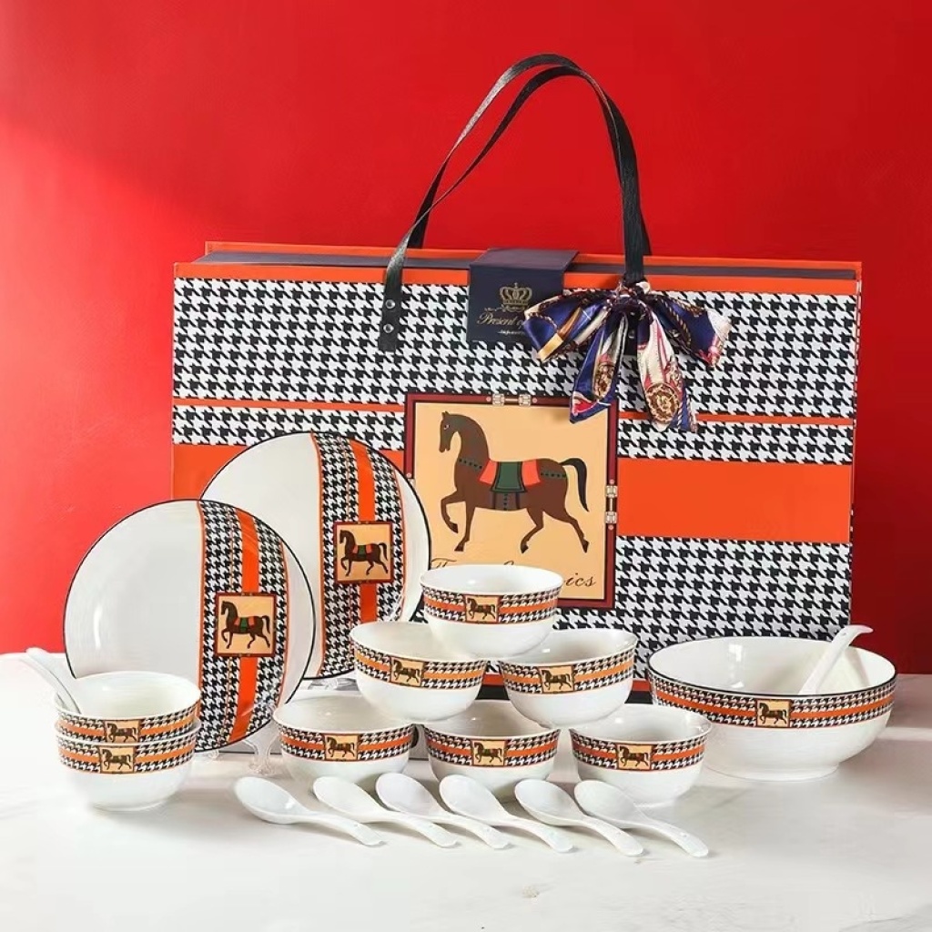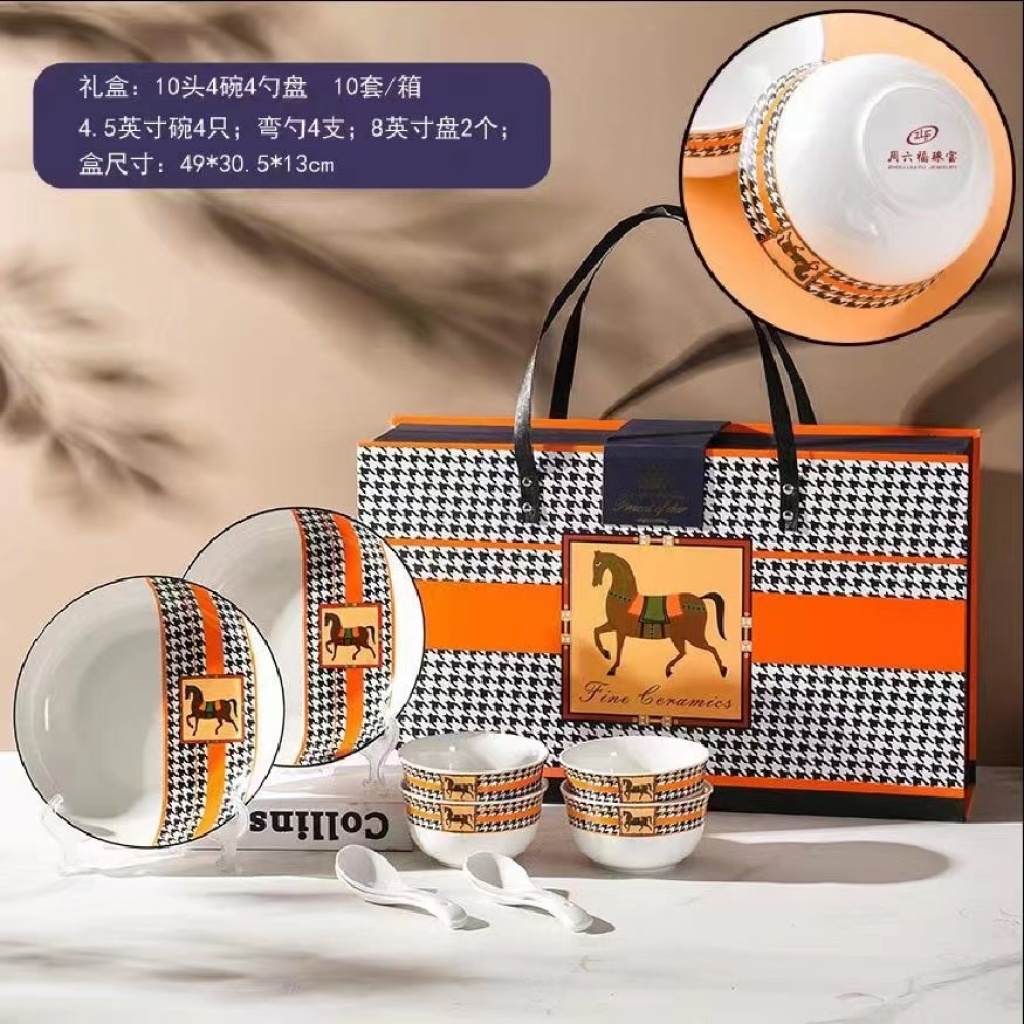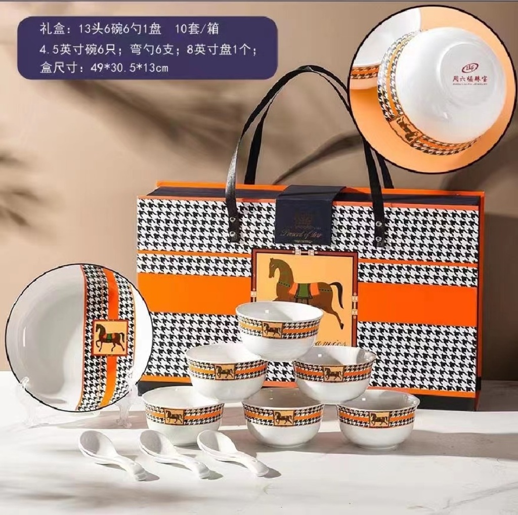 jingdezhen ceramic tableware set of dishes and bowls spoon cutlery gift set tableware ceramic plate kitchen supplies 中文版