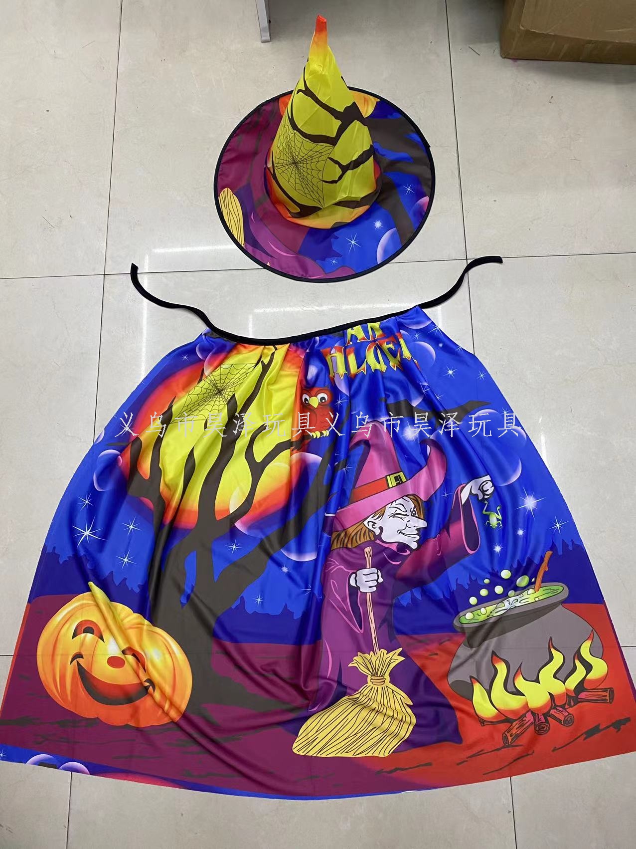 Halloween Pumpkin Witch Hat Cloak Set Children Adult Performance Costume Party Props Clothes Hat Decoration 中文版