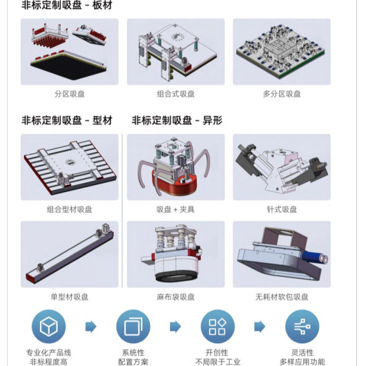 Doctor Gong brand vacuum sucker fixture is committed to vacuum handling technology in stacking, unstacking, handling, packing and other different application fields, providing customized vacuum handling professional solutions for various industries.