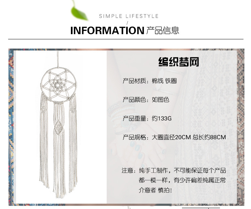 Cross-Border Supplier Nordic Style Home Wall Decoration Tapestry Hand-Woven Bohemian Wall Decoration Dreamcatcher Gt006 中文版