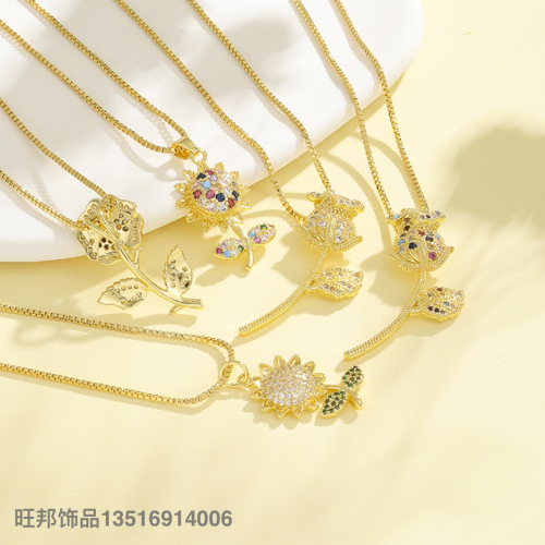 popular colorful sunflower pendant brass 18k gold plated zircon accessories european and american cross-border rose necklace