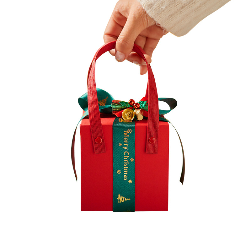 small carton + christmas ribbon + bow: high-grade apple box