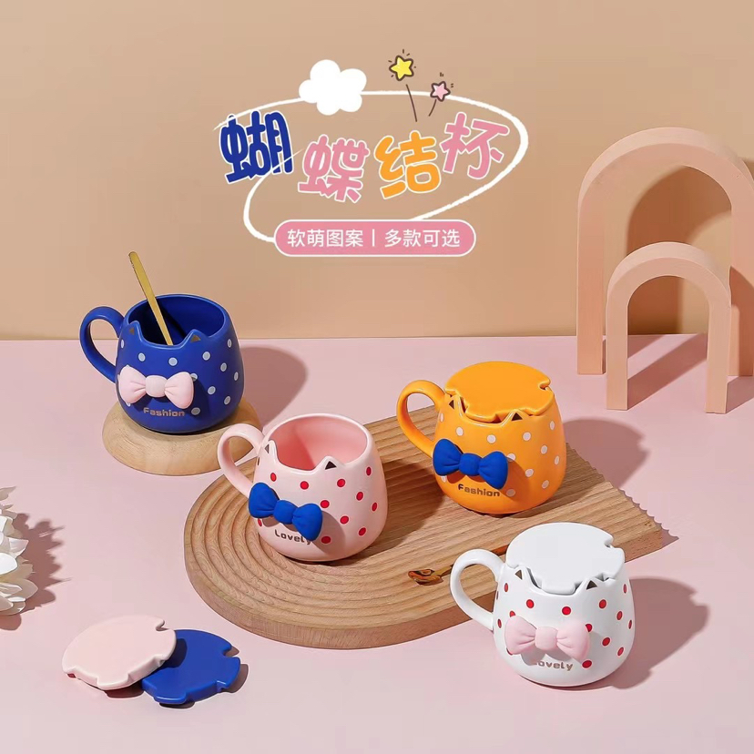ceramic cup polka dot bow mug water cup girly love cup good-looking coffee cup 1 中文版