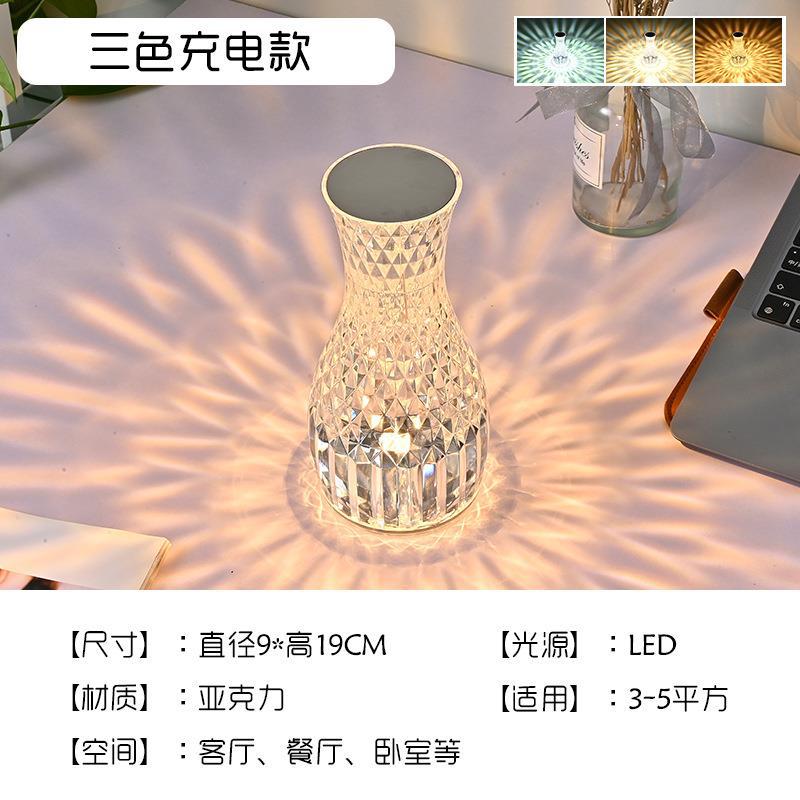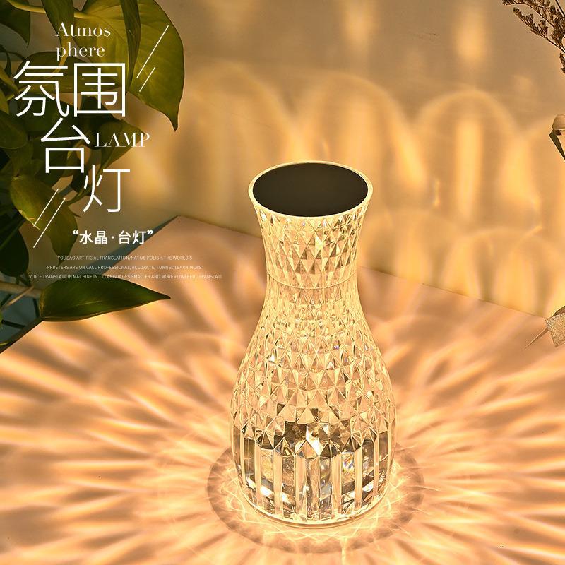 cross-border foreign trade net red vase crystal lamp bedroom romantic bedside lamp diamond table lamp atmosphere charging small night lamp 中文版