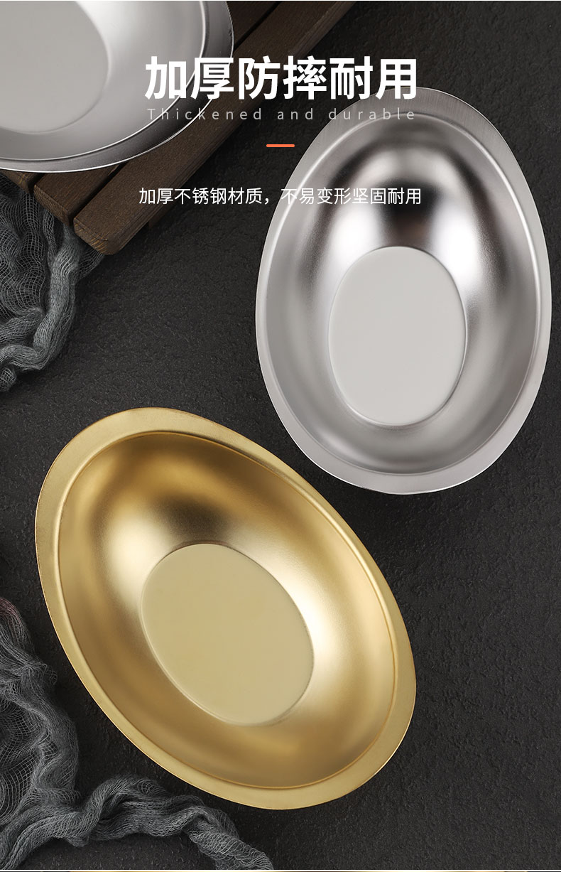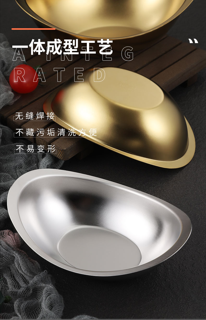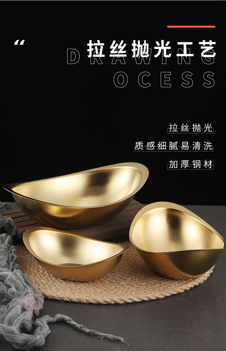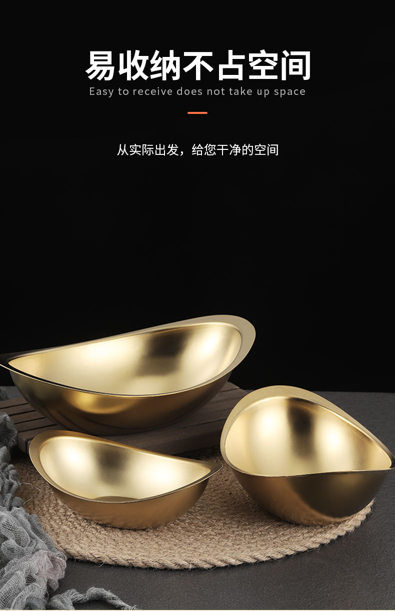 creative 304 stainless steel golden ingot bowl korean salad bowl commercial dessert snack bowl korean cooking cutlery 中文版