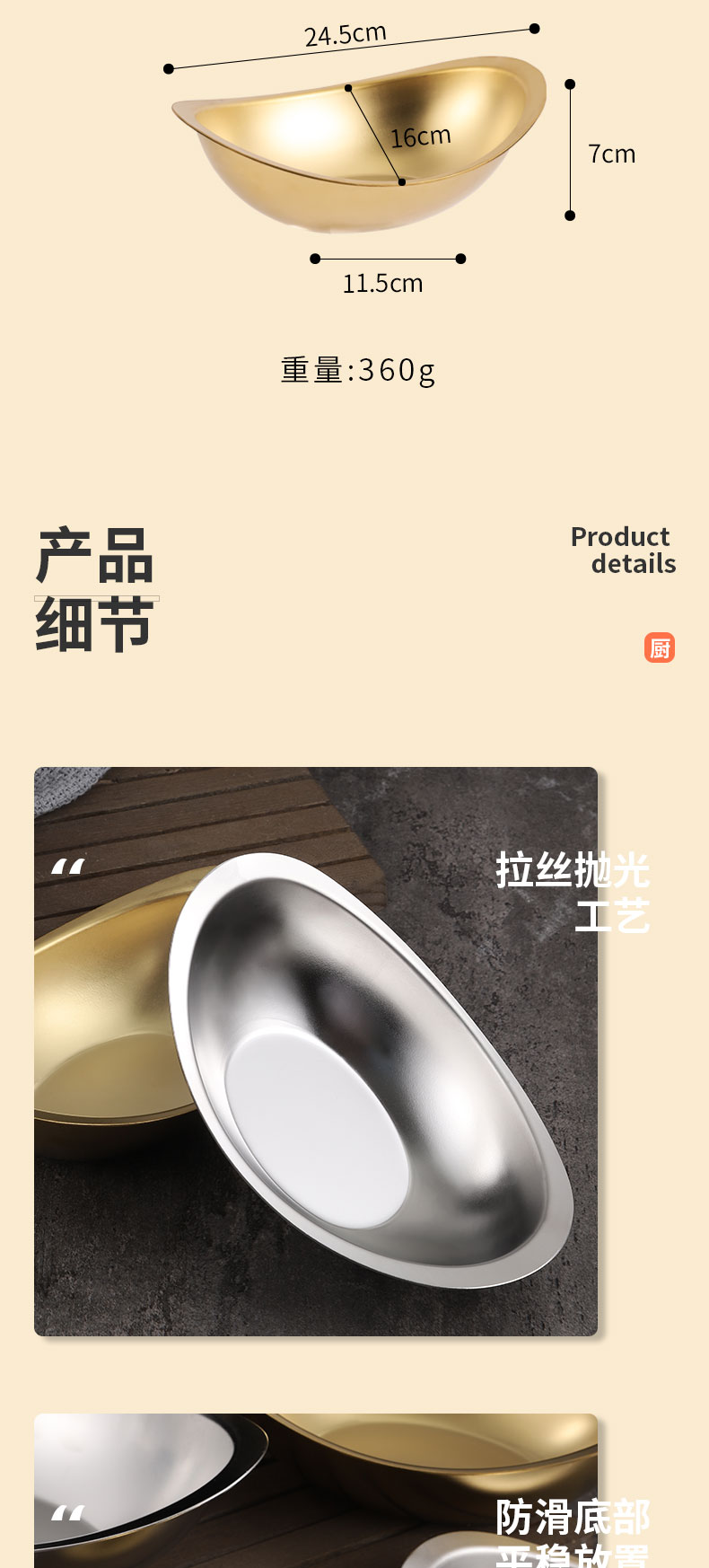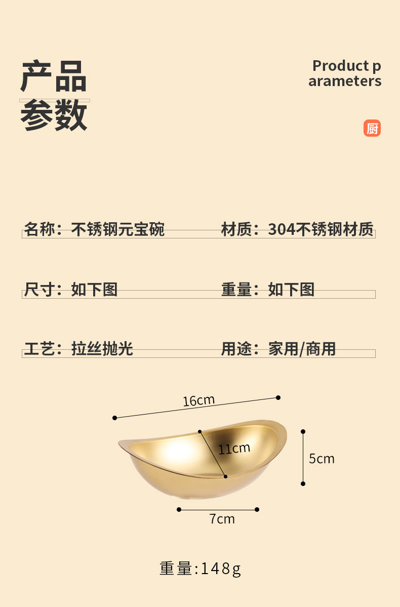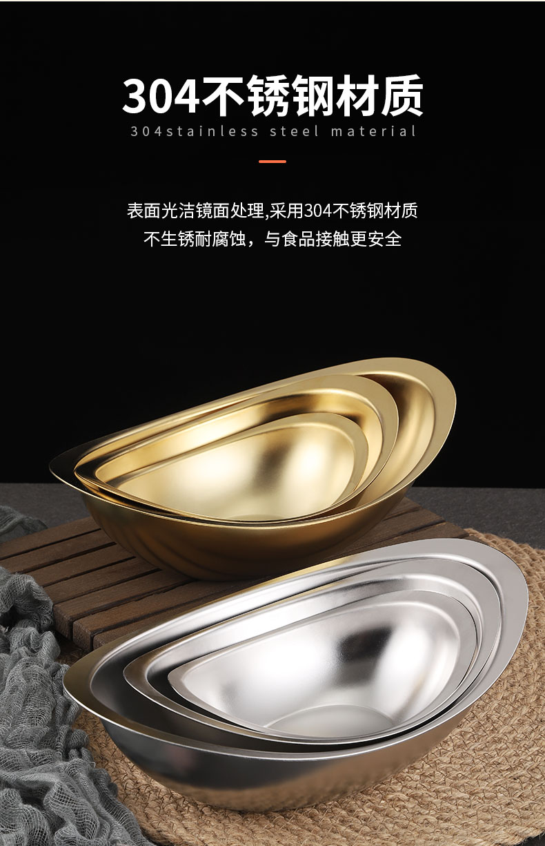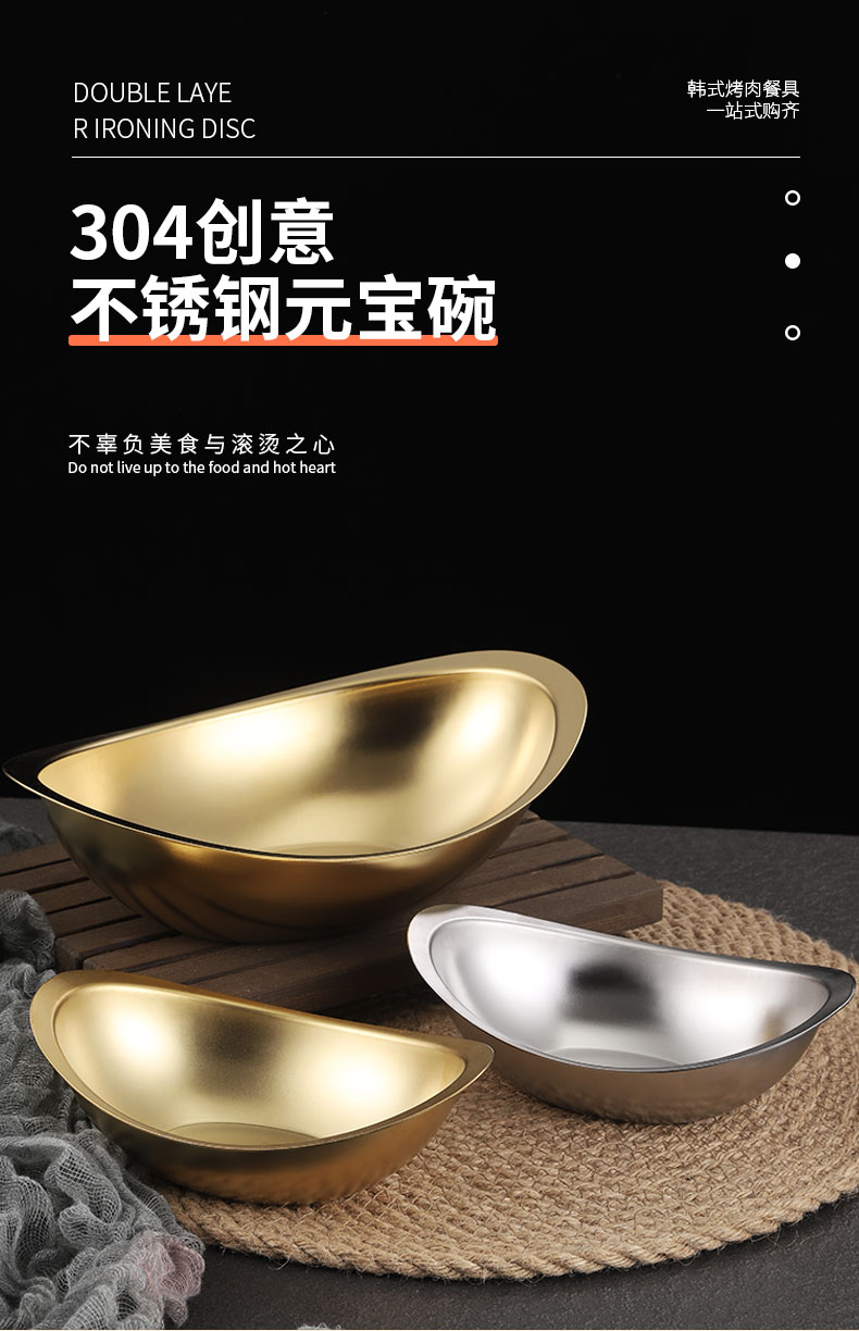 creative 304 stainless steel golden ingot bowl korean salad bowl commercial dessert snack bowl korean cooking cutlery 中文版
