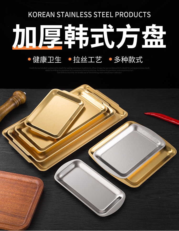 304 stainless steel plate korean style barbecue plate barbecue plate thickened plate rectangular dinner plate household flat tray 中文版