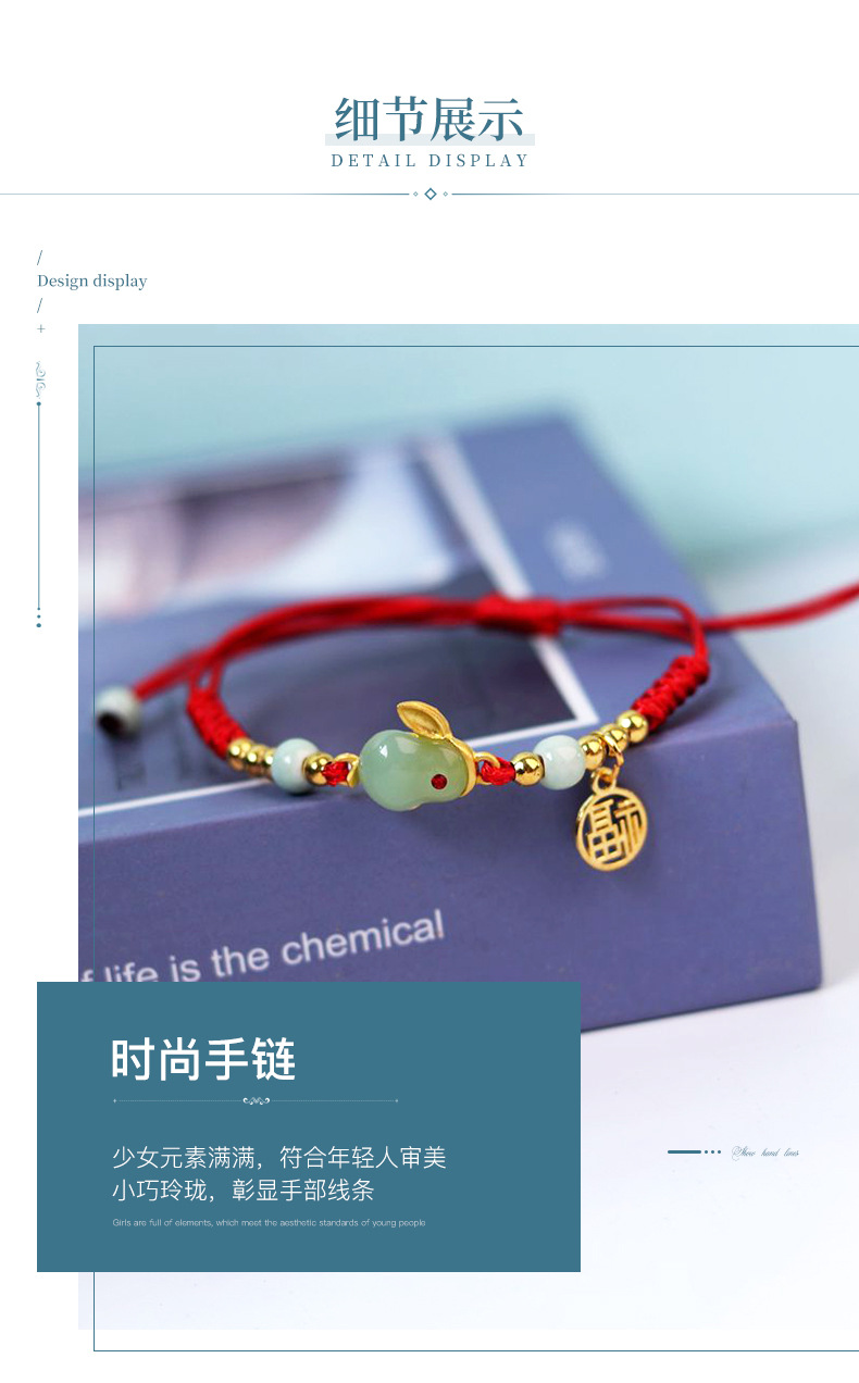 red rope braid rabbit blessing card tag bracelet chinese zodiac sign of rabbit female bracelet