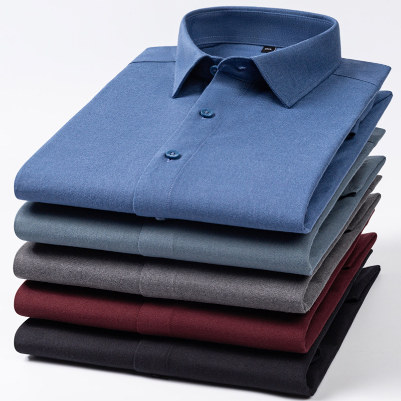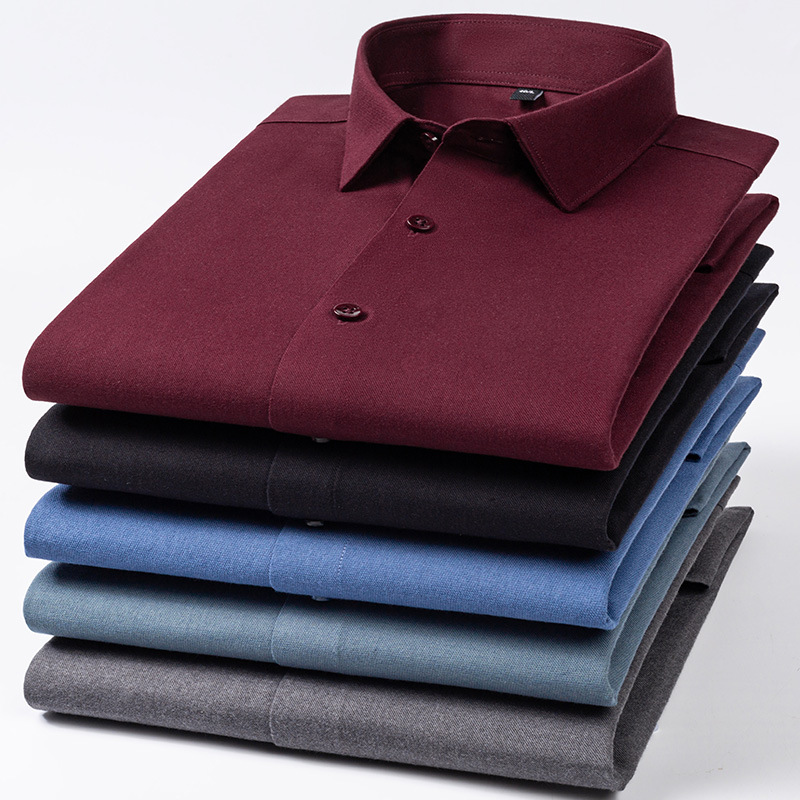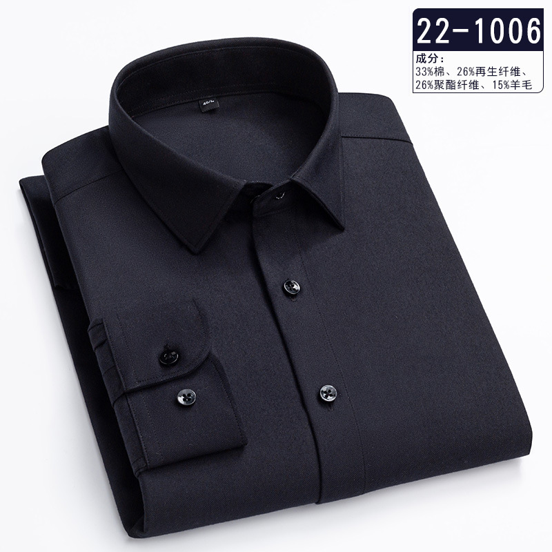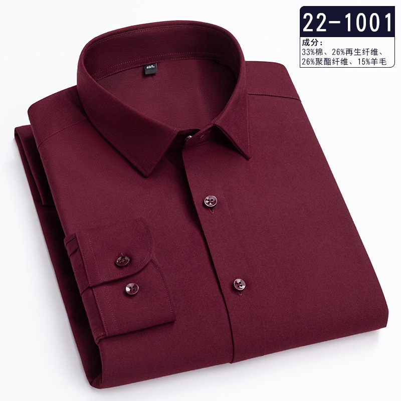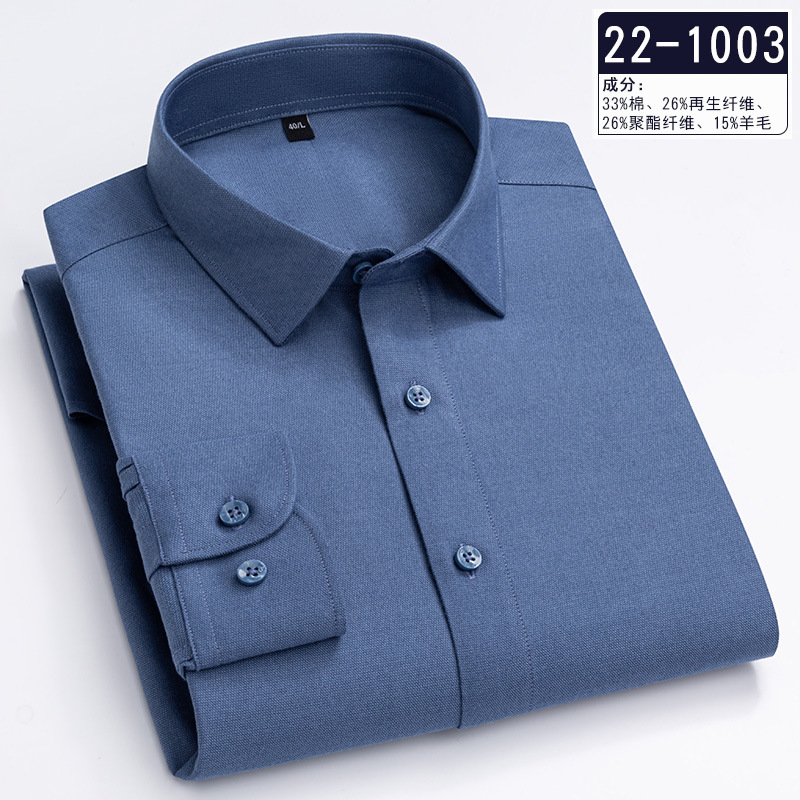 Pure Color Wool Shirt Men's Long Sleeve Business Casual Shirt Non-Ironing Anti-Wrinkle High-End Shirt Autumn New