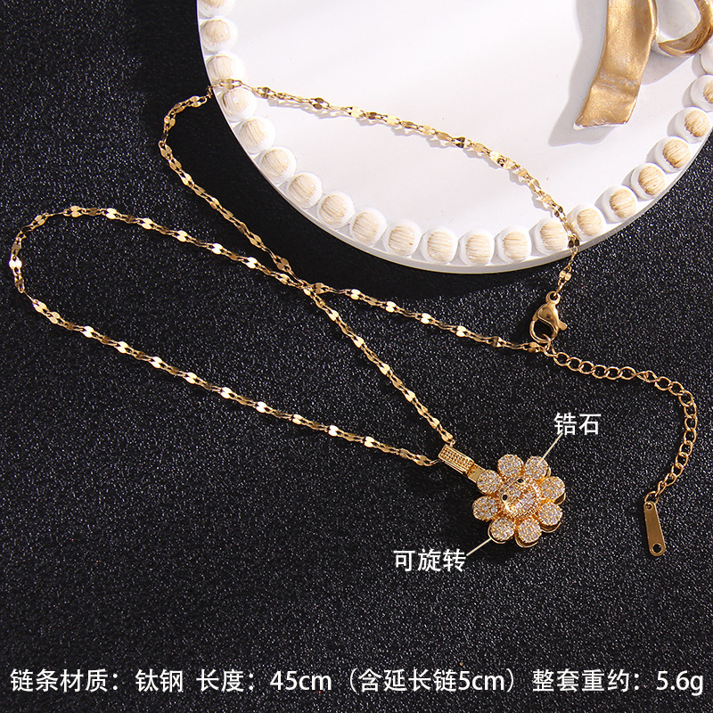 Rotatable Flower Necklace Light Luxury Zircon Necklace for Women Ins Special-Interest Design High-Grade Titanium Steel Clavicle Chain Accessories