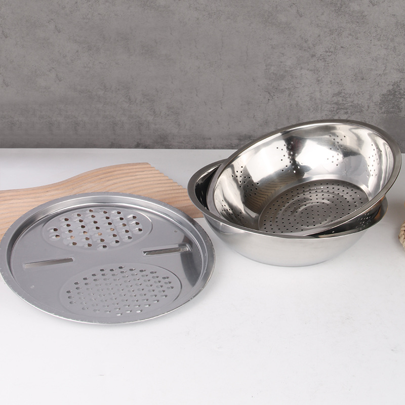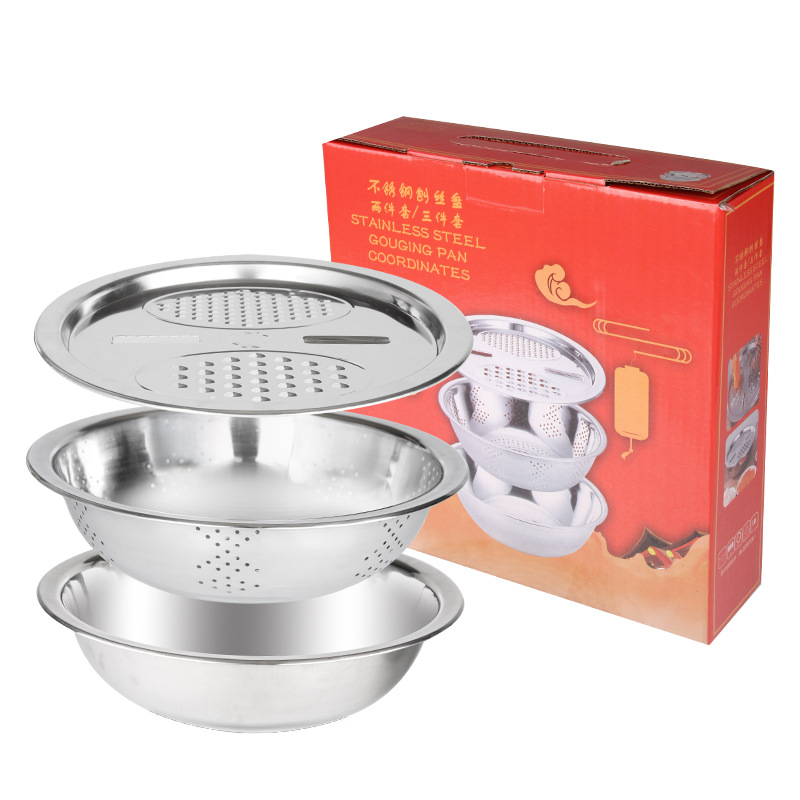 hz361 stainless steel slicer basin three-piece set three-piece kitchen set rice rinsing sieve three-piece set gift points exchange