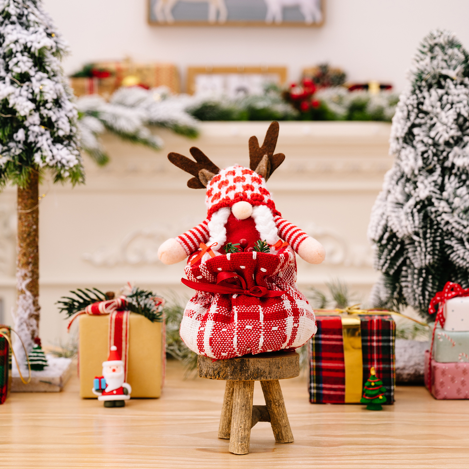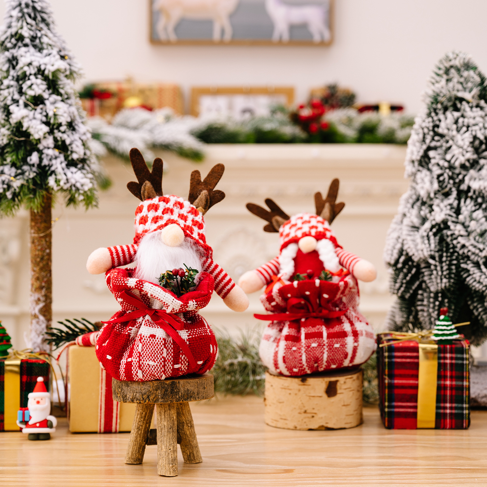 New Christmas Decoration Supplies Antlers Gift Bag Rudolf Doll Cartoon Children's Apple Bag Ornaments 中文版