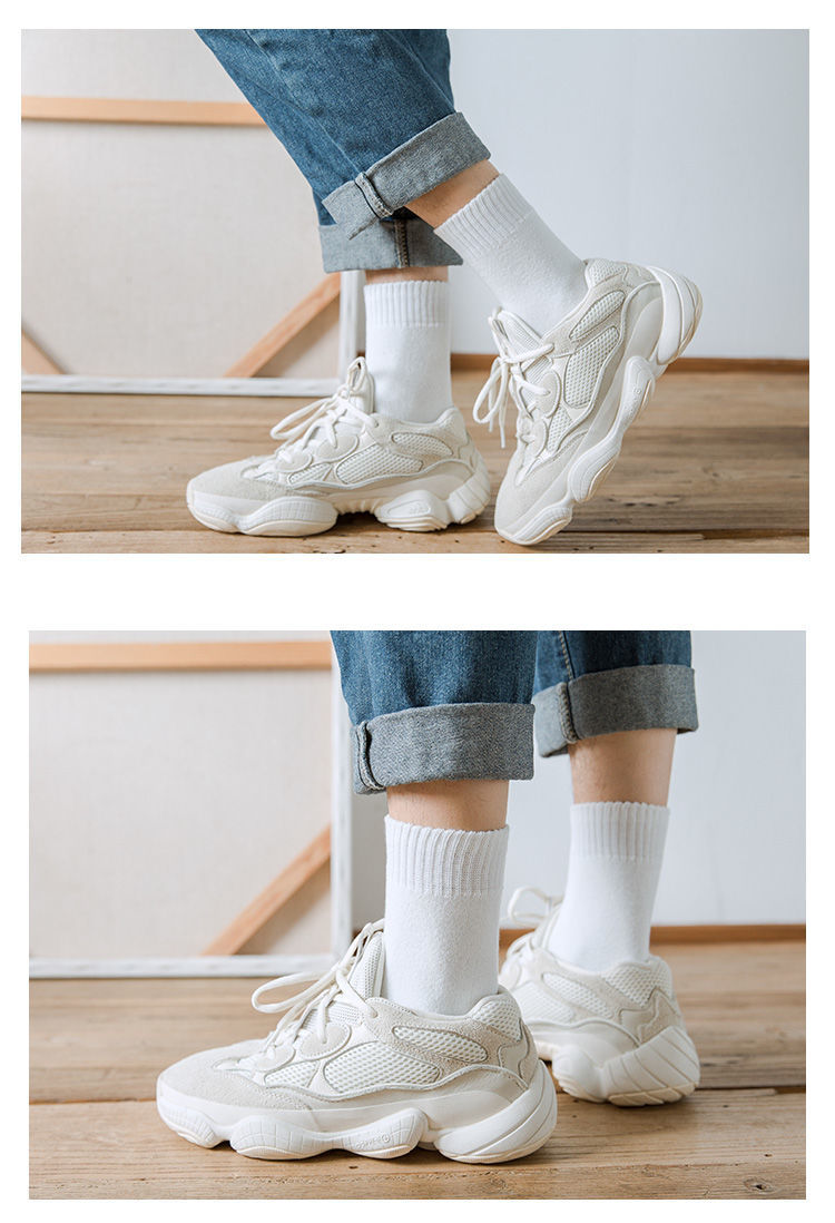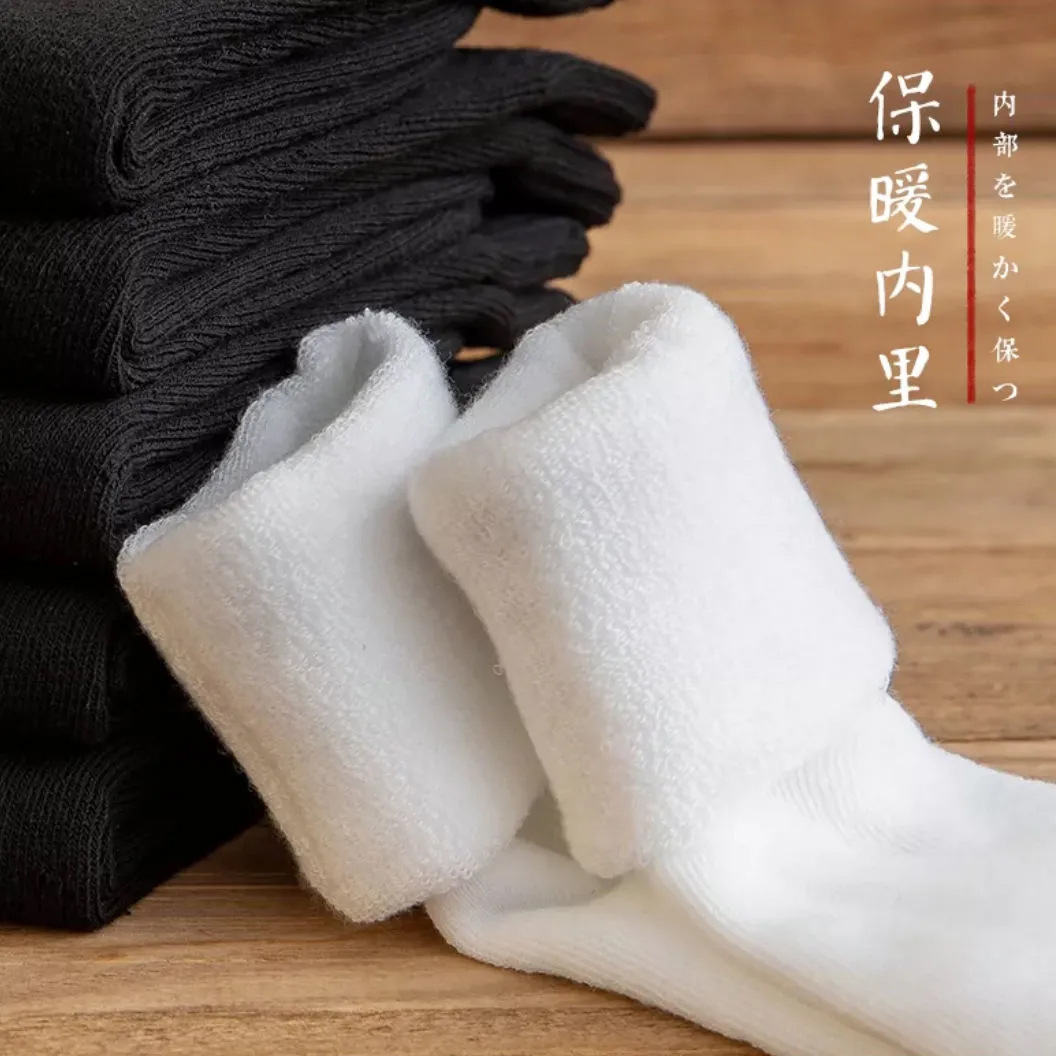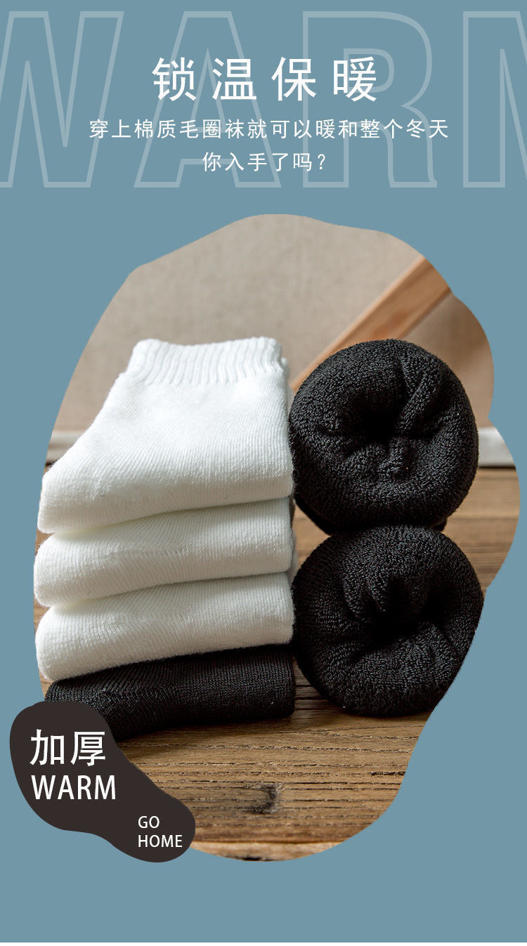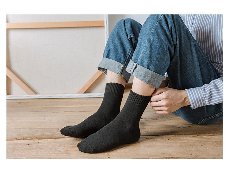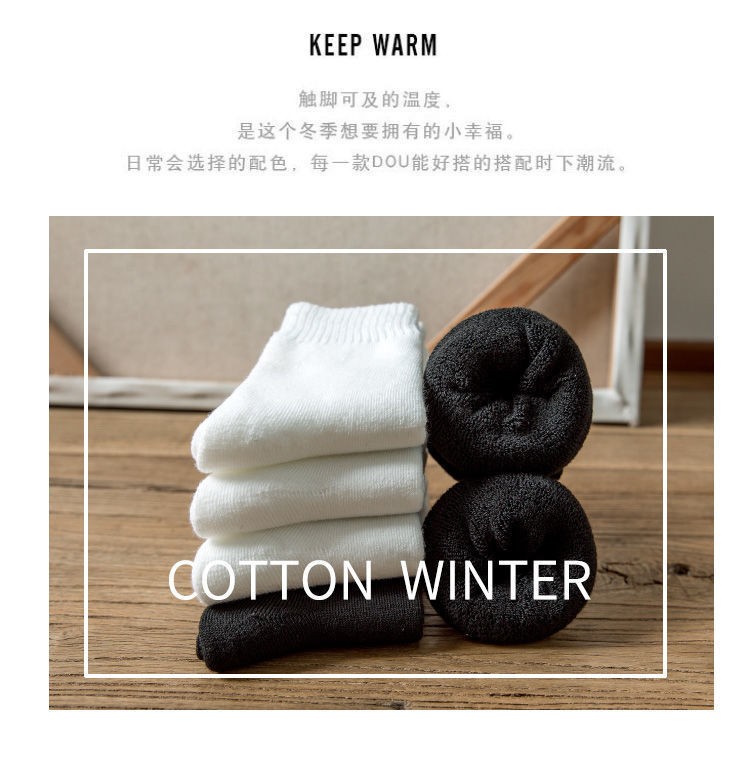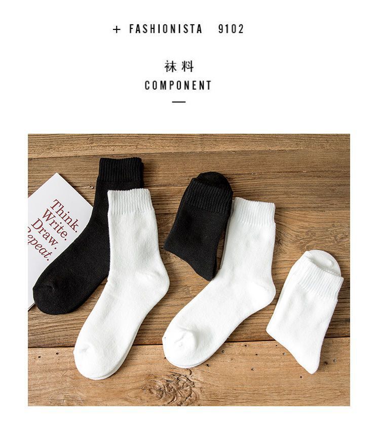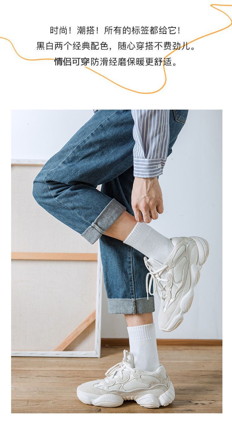 Socks Men's Middle Tube Socks Autumn and Winter Thickened Warm Stockings Black Korean Style Students' Socks Pure White Lovers Wild 中文版
