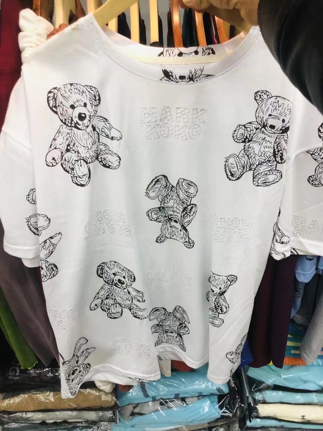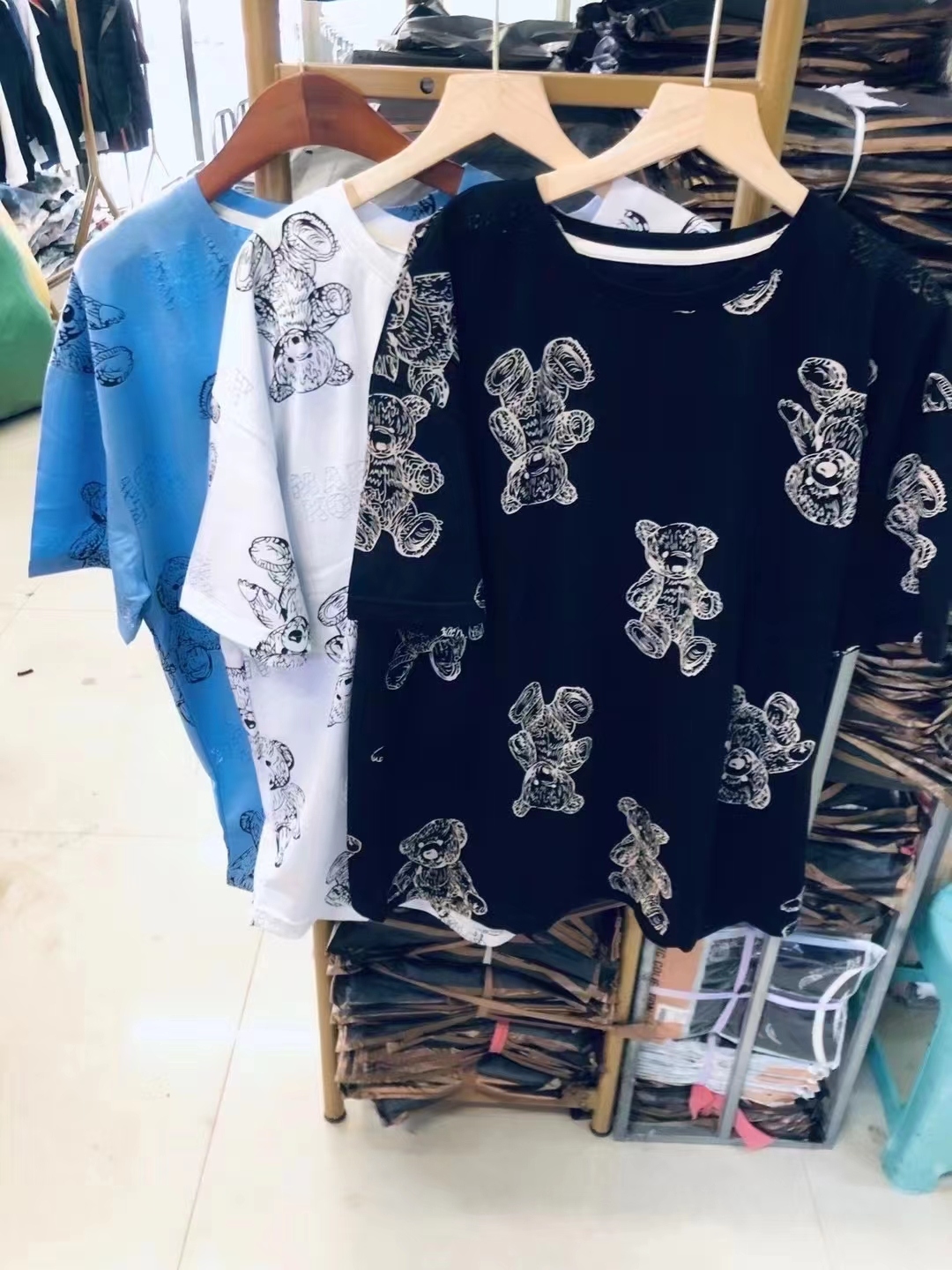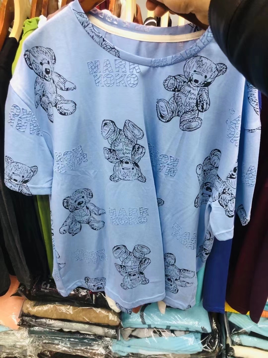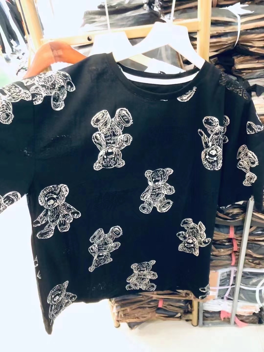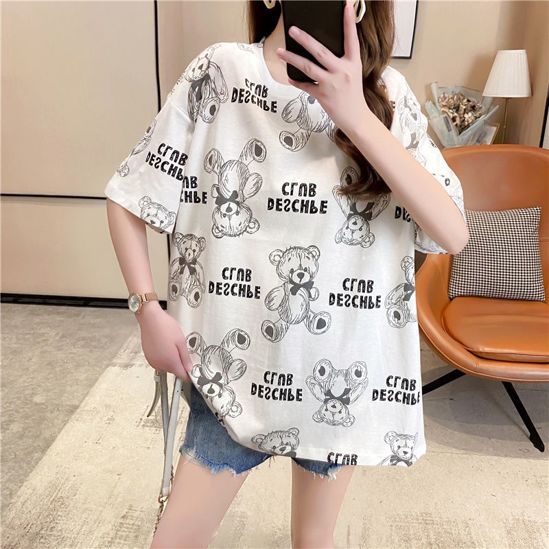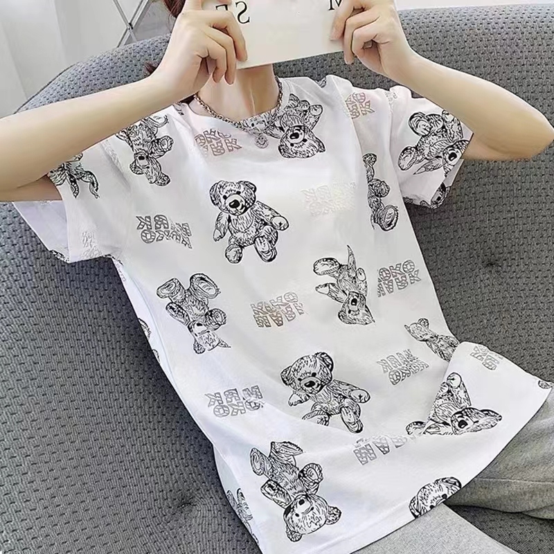 Summer internet celebrity ins super hot Korean version mid-length cartoon bear T-shirt for men and women, loose and lazy style new top
