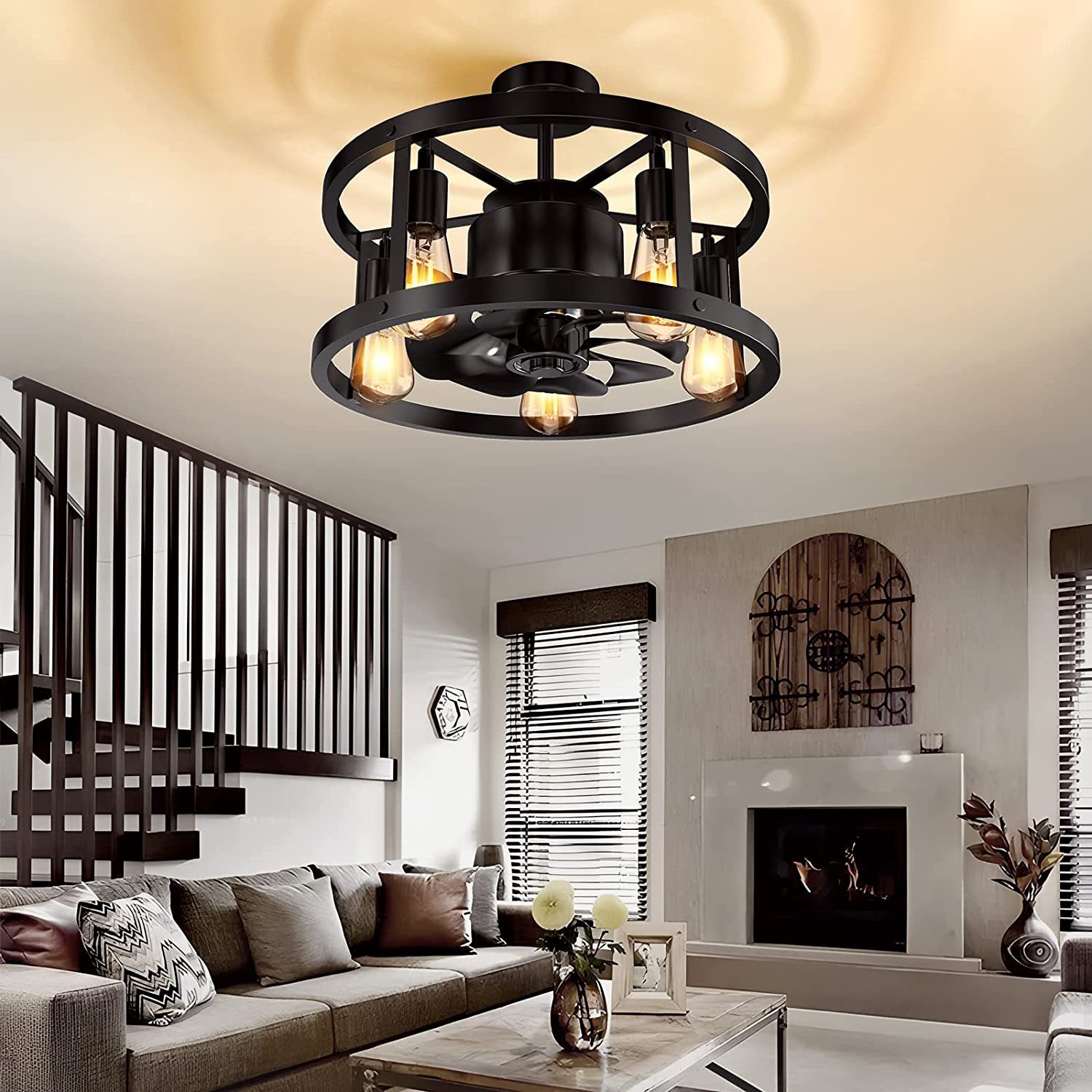 new retro ceiling bedroom fan lamp american industrial style remote control restaurant ceiling fan lights wrought iron top light amazon