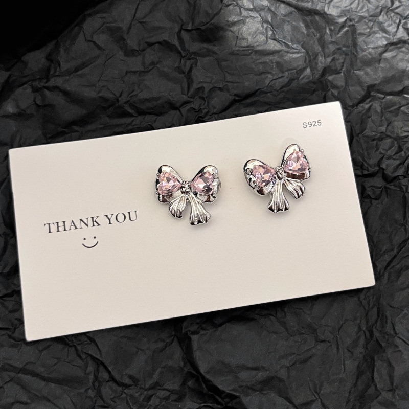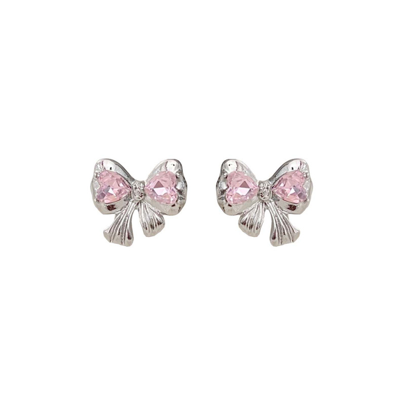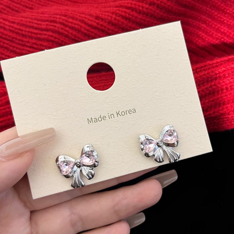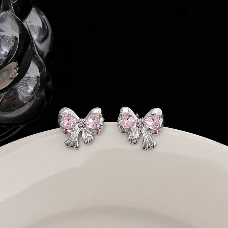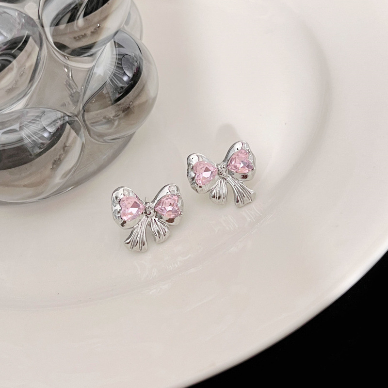 Pink Heart-Shaped Zircon Bow Stud Earrings Female Sweet Cool Hot Girl Earrings 2023 New Fashion Niche Design Earrings