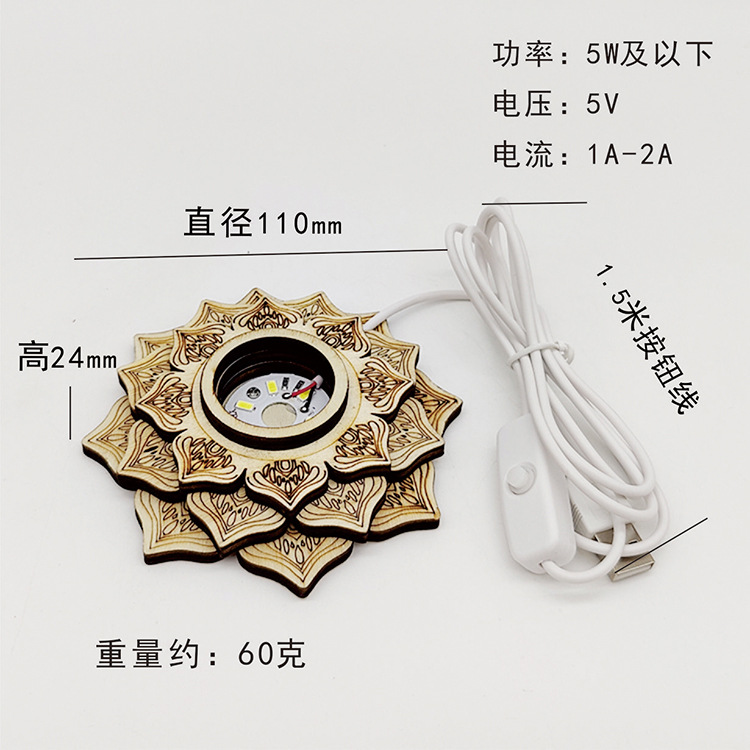 3d small night lamp creative lotus-shaped solid wood base led luminous crafts decoration usb crystal gift 中文版