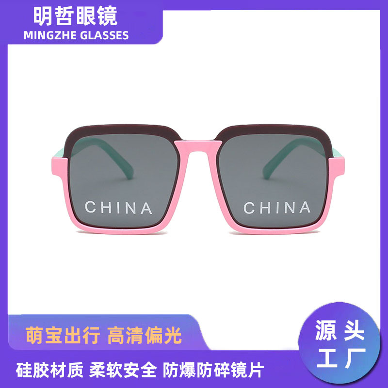 2022 New Children's Chinese Letters Glasses Boys and Girls Street Shooting Spring Outing Silicone Soft Legs Baby Polarized Sunglasses
